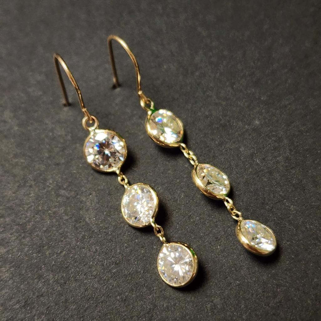 14K Yellow Gold White Moissanite(2.7ct) Earrings (~weight 0.94g), Appraised Retail $1870