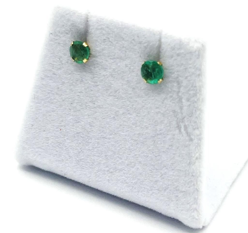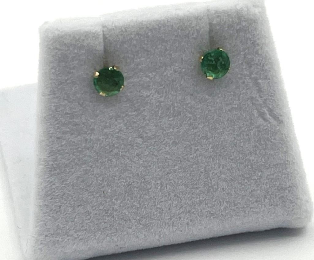 14KT Yellow Gold Natural Emerald Earrings, Retail $300.00. Emerald is the birthstone for May.