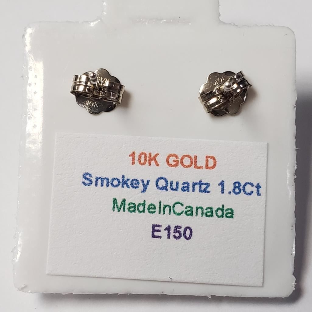 10K White Gold Smokey Quartz(1.8ct) Earrings (~Size )(Ring is resizable for $40) (~length inches), Made in Canada, Suggested Retail Value $150