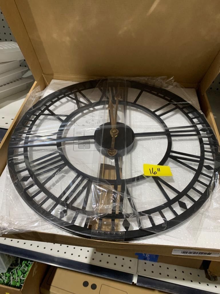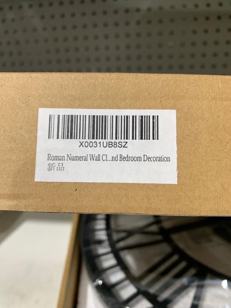 16-Inch Roman Numeral Wall Clock With Metal Frame and Decorative Hands