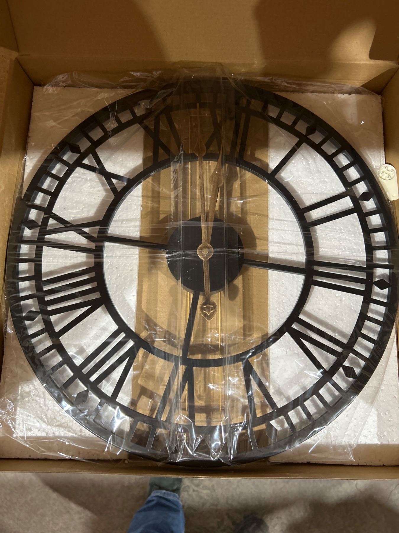 16-Inch Round Wall Clock With Roman Numerals and Black Frame