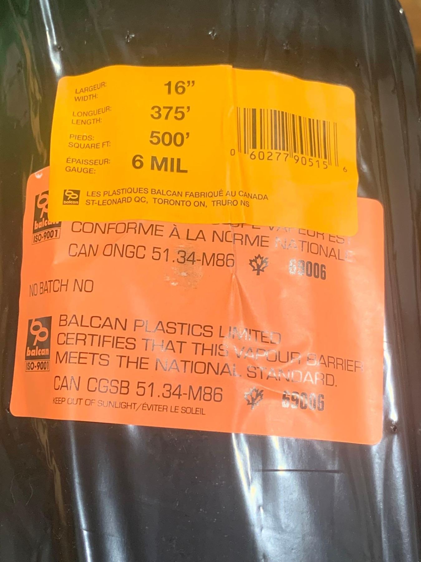 16" x 375' Vapour Barrier Poly Roll 6 Mil 500 Sq Ft Total