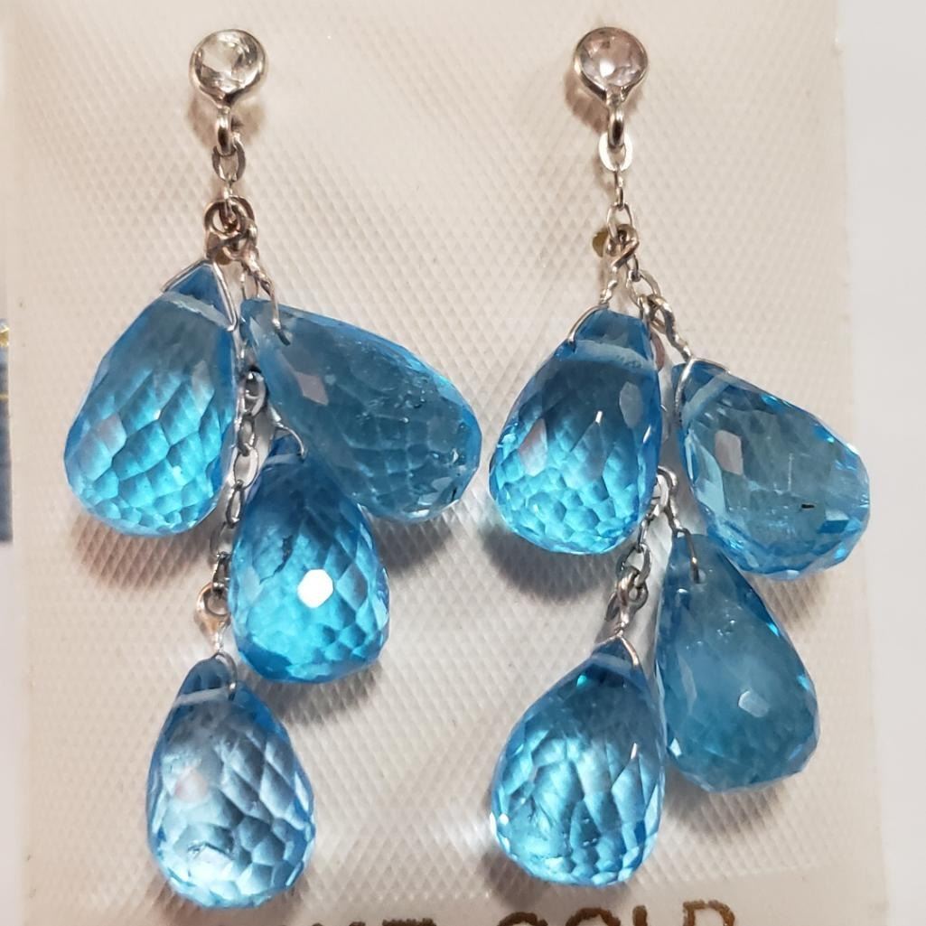 14K White Gold Blue Topaz(35ct) White Sapphire(0.15ct) Earrings (~Size 0) (~length 0 inches), Suggested Retail Value $1600