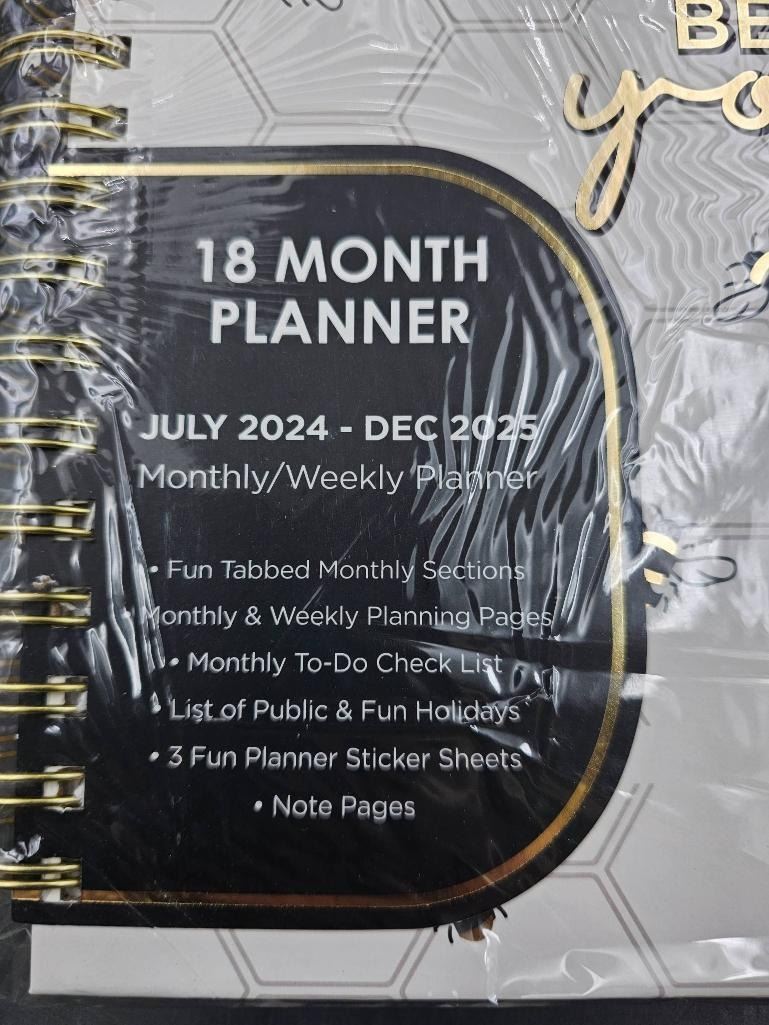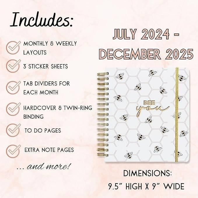18-Month Planner for July 2024 – December 2025 with Gold Spiral Binding