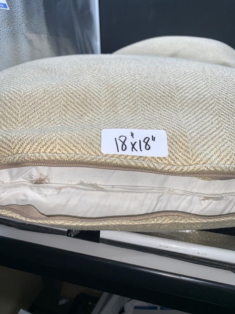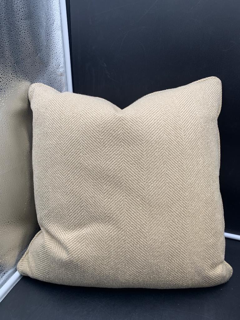18 x 18 Inch Beige Decorative Pillow with Herringbone Pattern and Zipper Closure