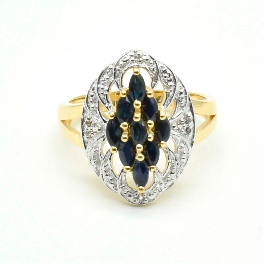 Gold plated Silver Blue Sapphire White Topaz(1.45ct) Gold Rhodium Plated Ring (~weight 3.73g), Suggested Retail Value $180