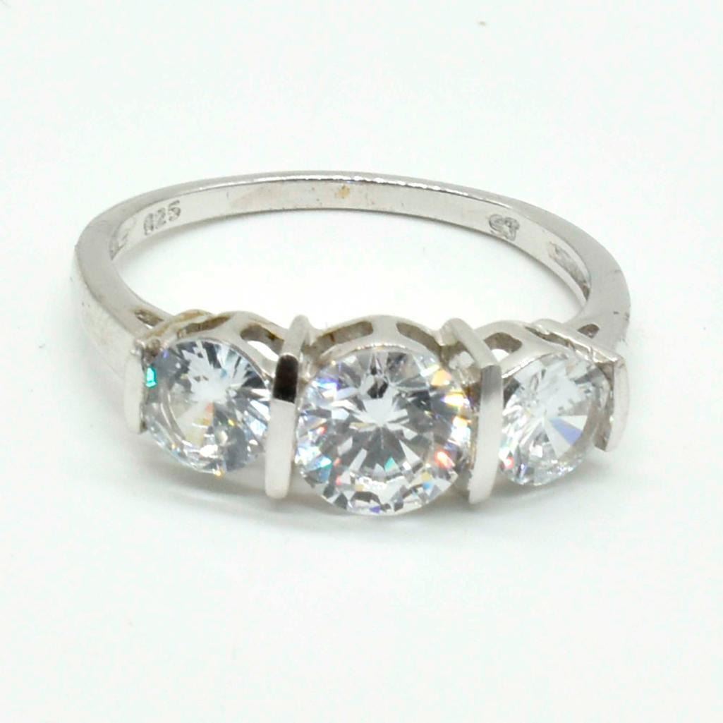 Silver Cubic Zirconia(2.25ct) Rhodium Plated Ring (~weight 3.4g), Suggested Retail Value $180