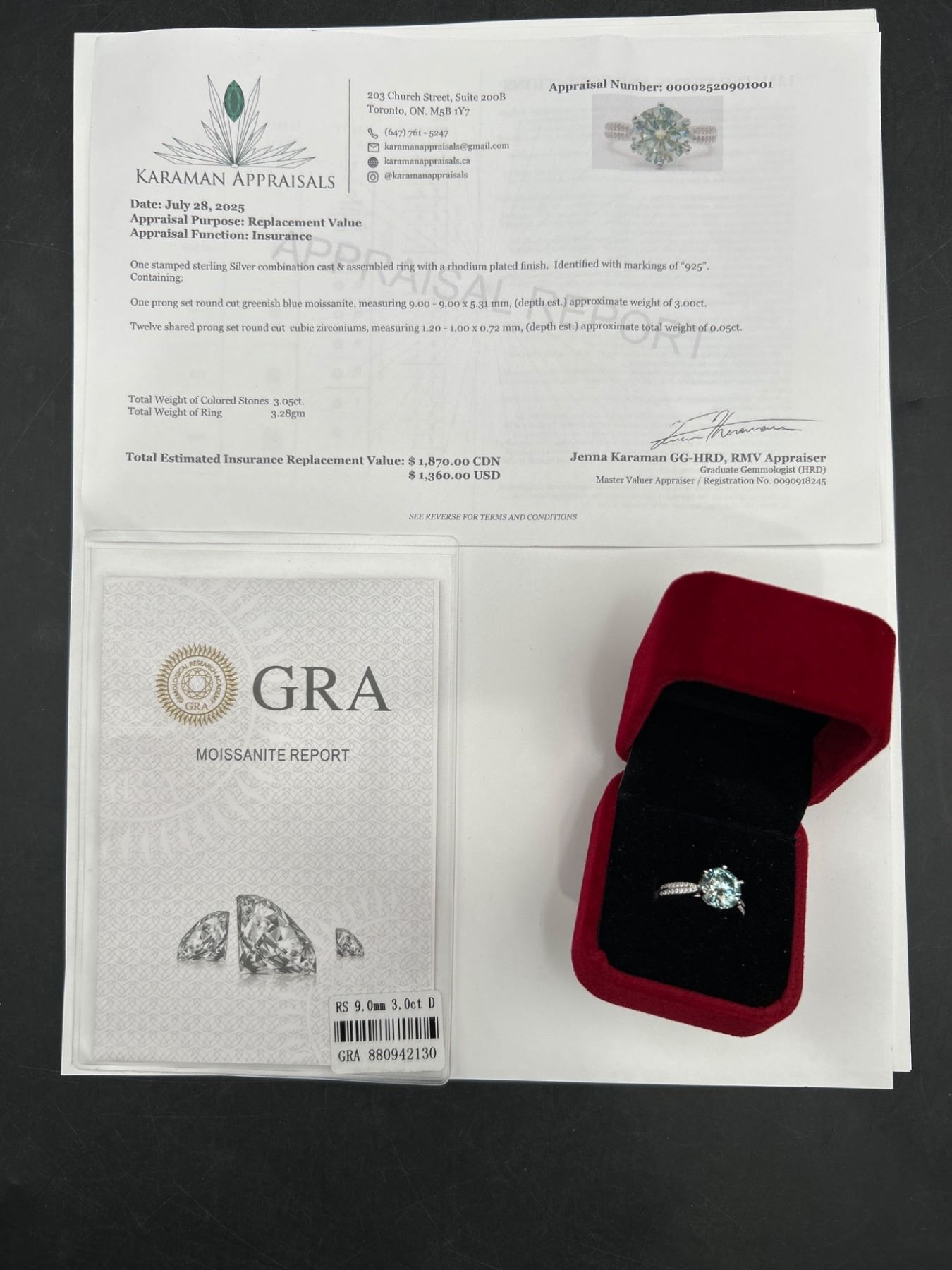 $1870 APPRAISED – BLUE 3.0 CARAT MOISSANITE SOLITAIRE RING