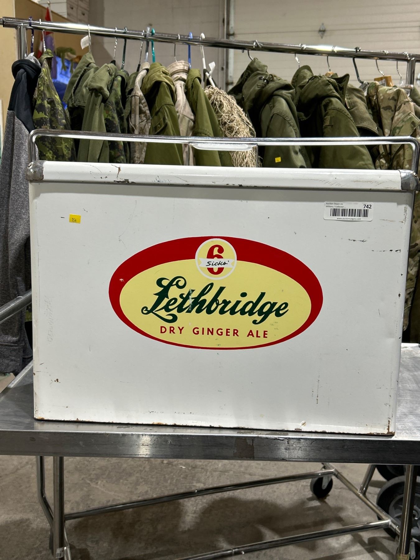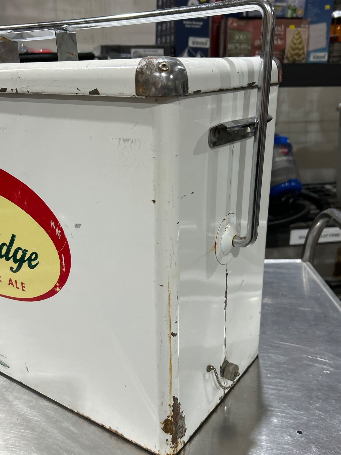1950’s Vintage Sicks’ Lethbridge Dry Ginger Ale Metal Ice Cooler with Lid and Handle