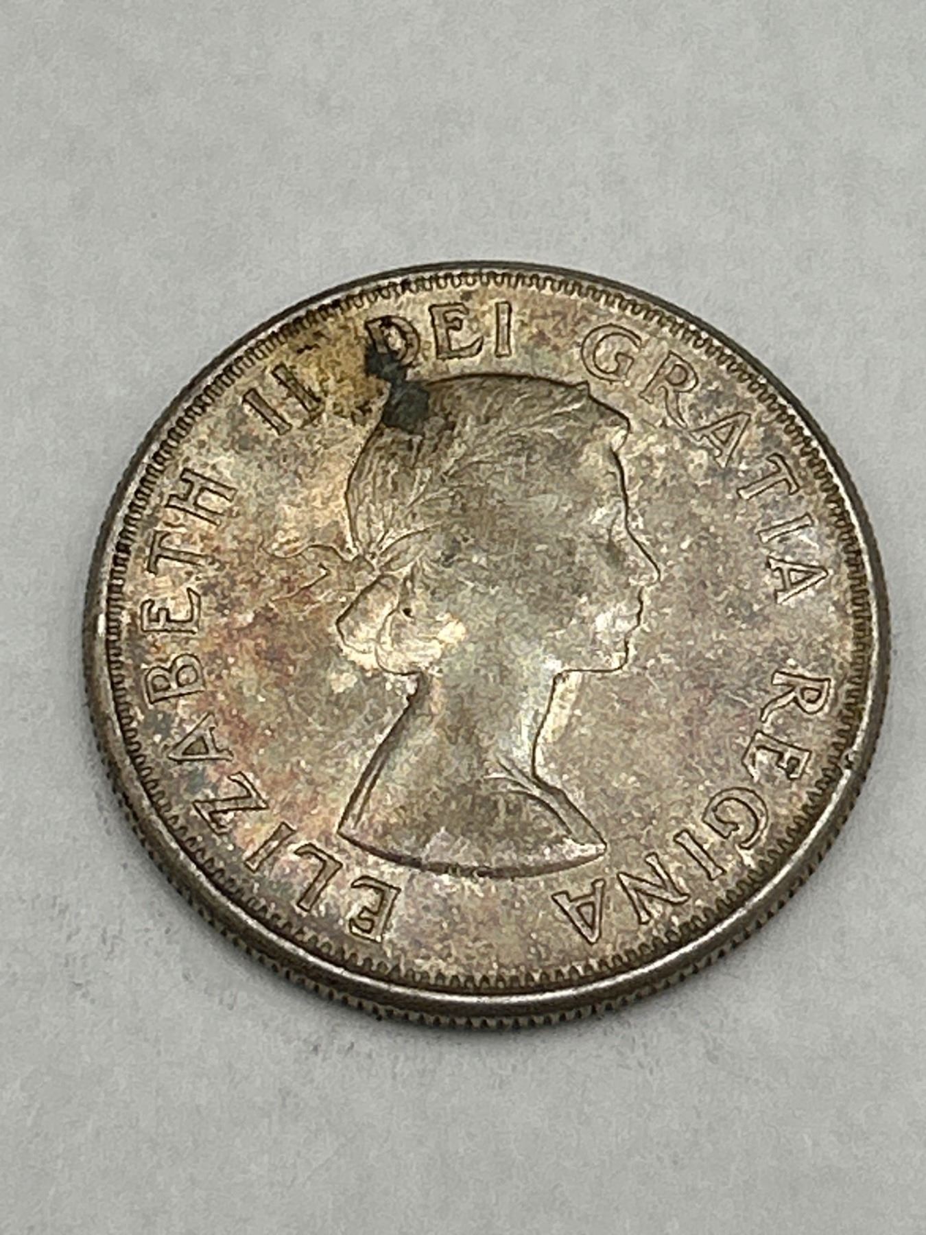1959 Canada 50 Cents Coin Featuring Queen Elizabeth II and Canadian Coat of Arms