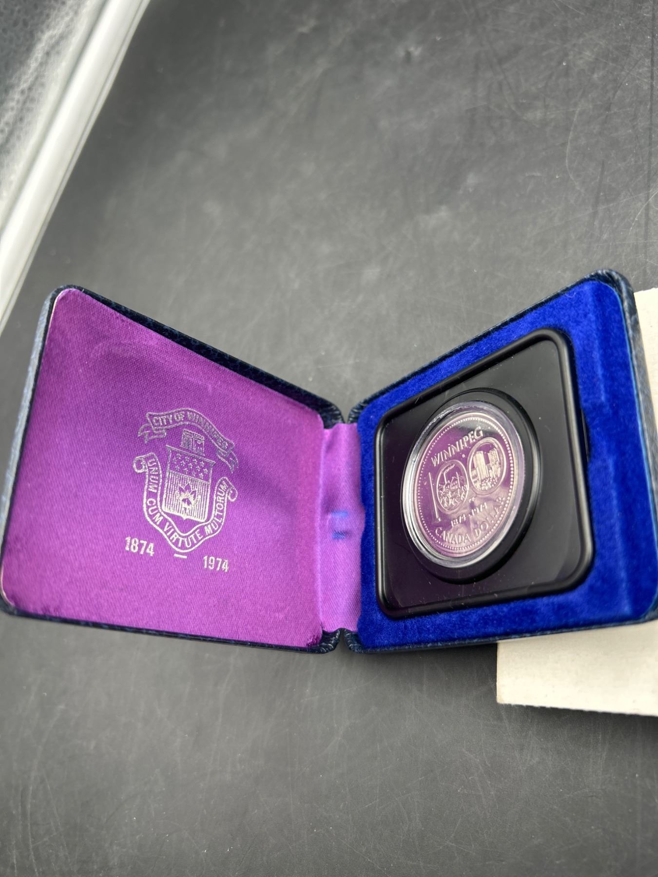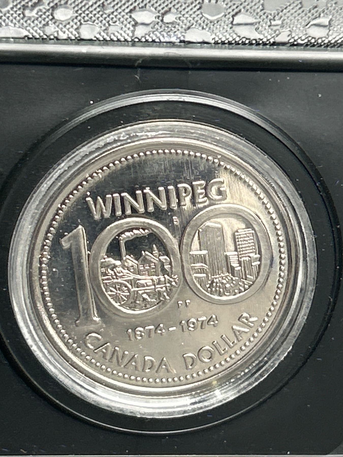 1974 Canadian Winnipeg Centennial Silver Dollar in Display Case