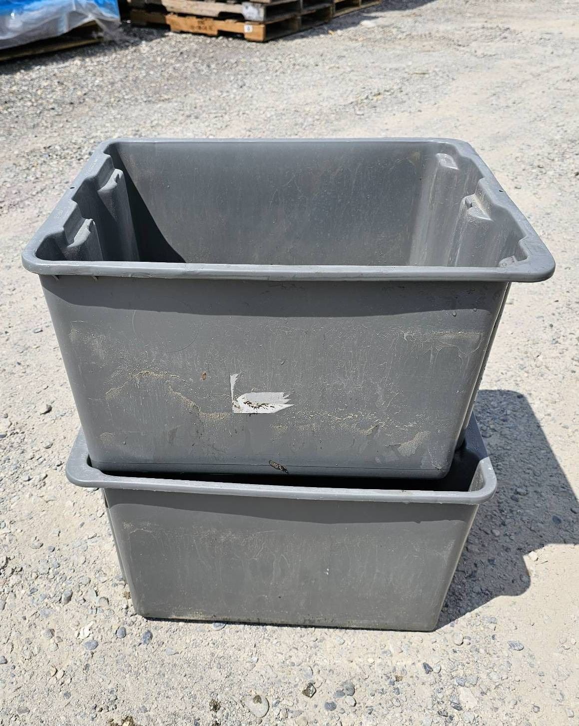 2, 21″x17″x12″ Heavy Duty Grey Plastic Stacking Bins