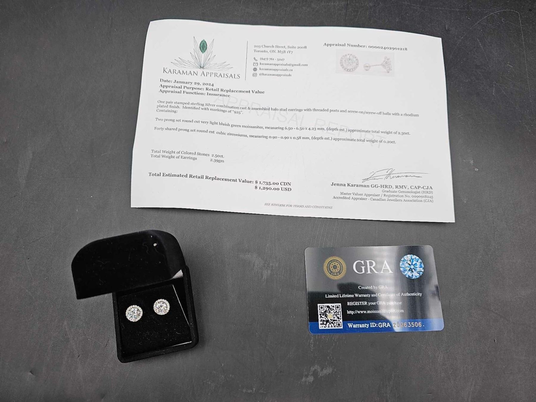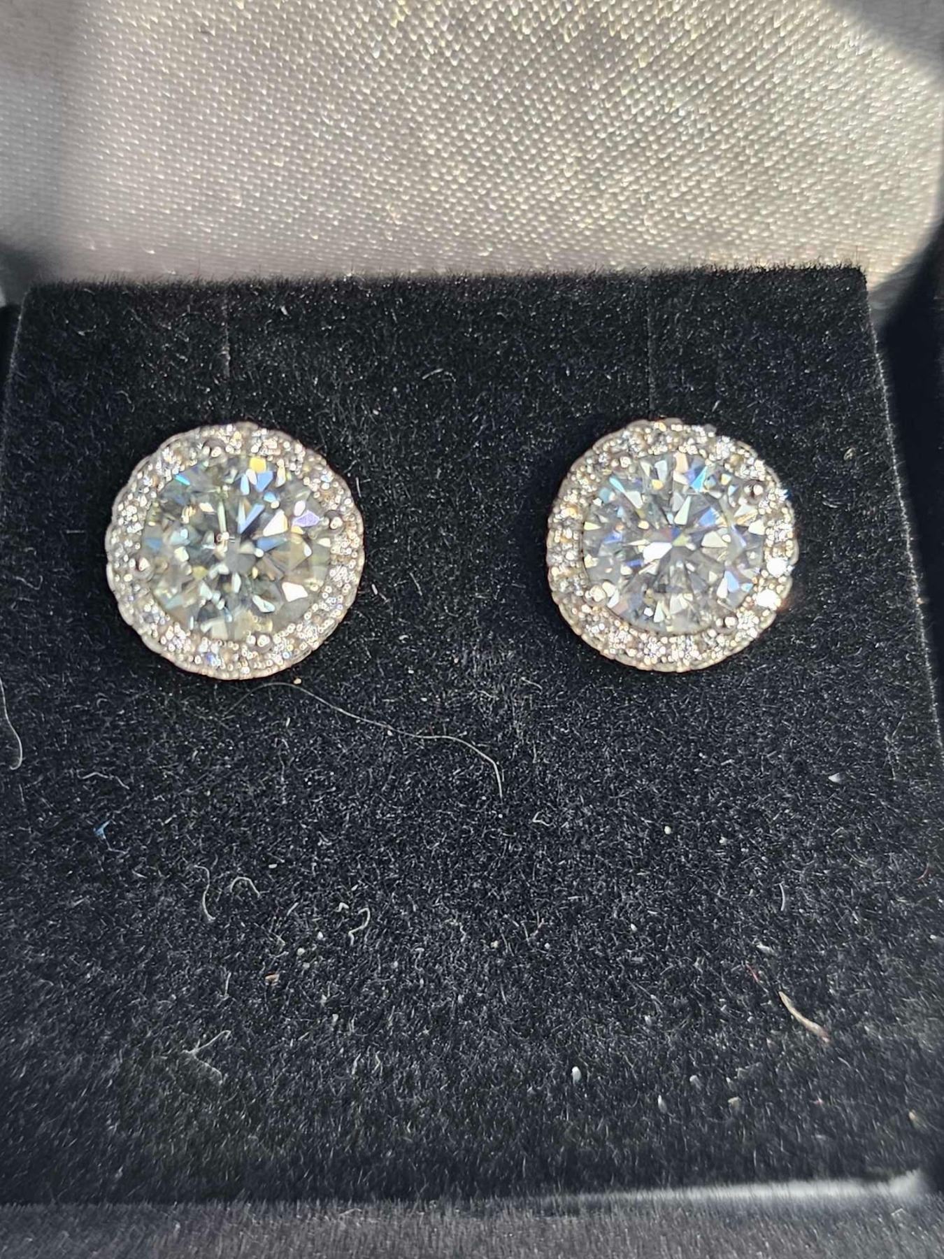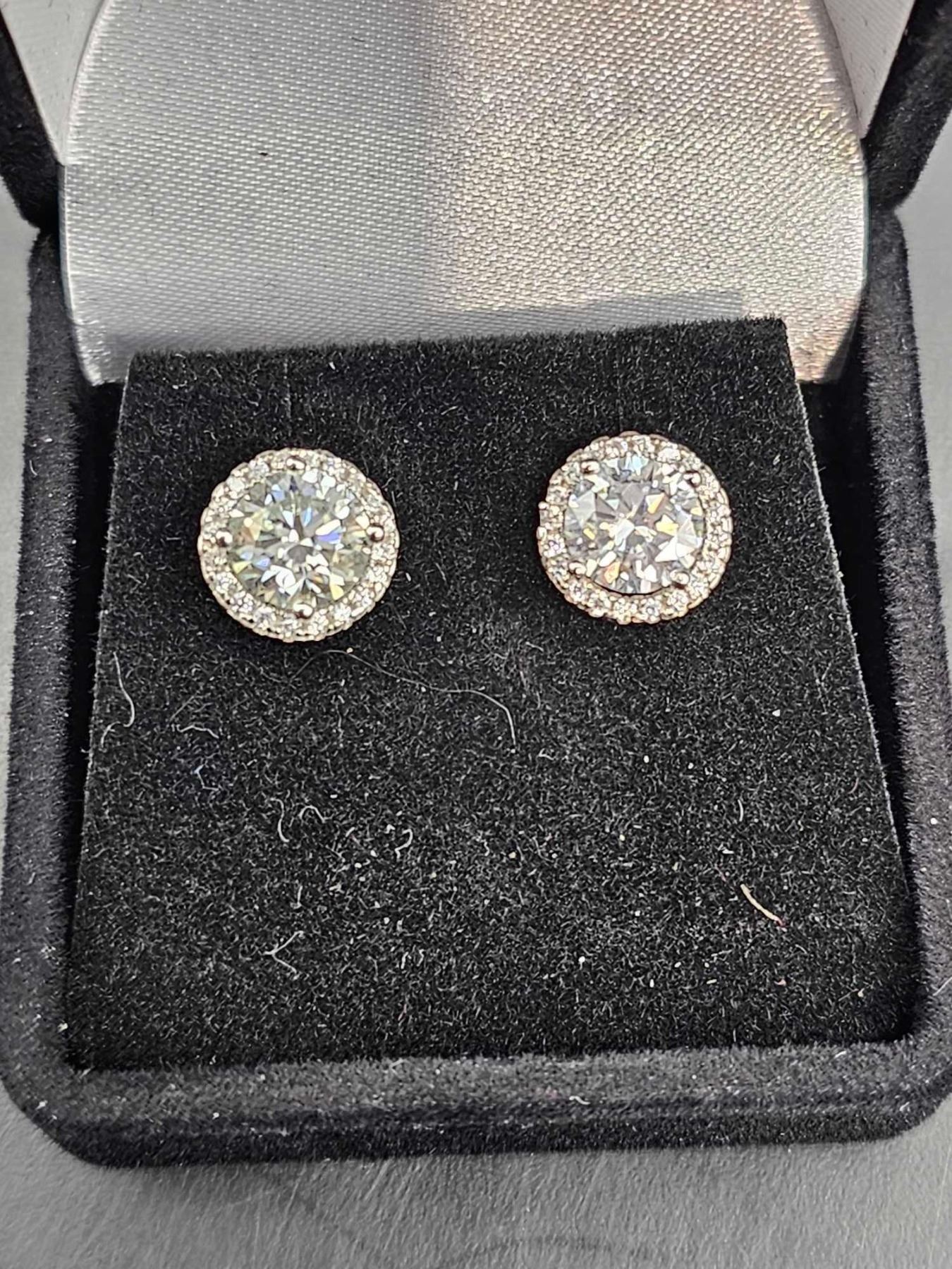 2.30 CT TW GRA CERTIFIED ROUND BRILLIANT CUT MOISSANITE STONES VVS SET IN CENTER OF EARRINGS SET IN 925 SILVER RETAIL VALUE $1,735.00