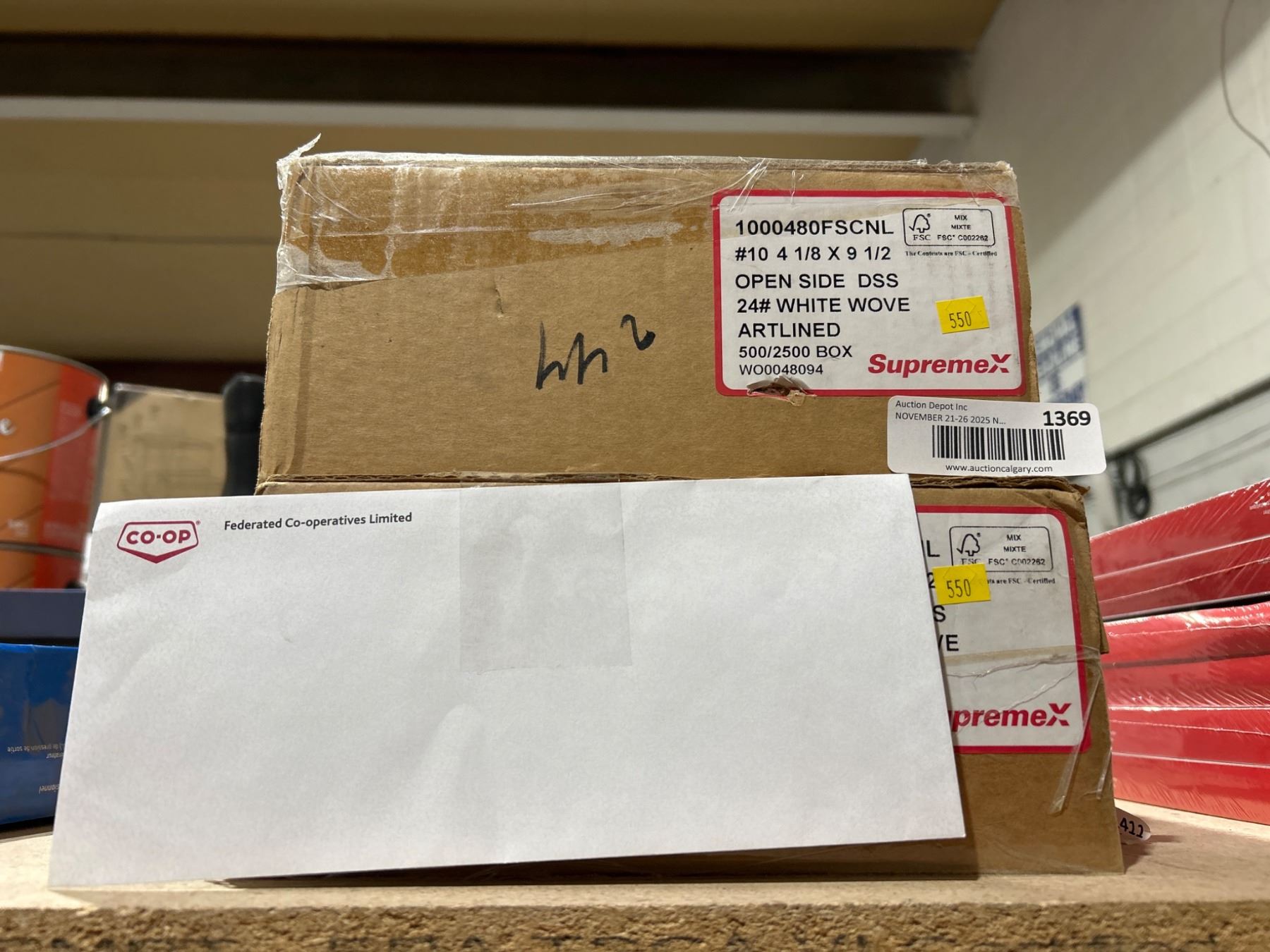 2×500 Supremex White Envelopes, Model 1004480FSCNL, #10 Size, 4 1/8 x 9 1/2 (MARKED FEDERATED CO-OPERATIVES)