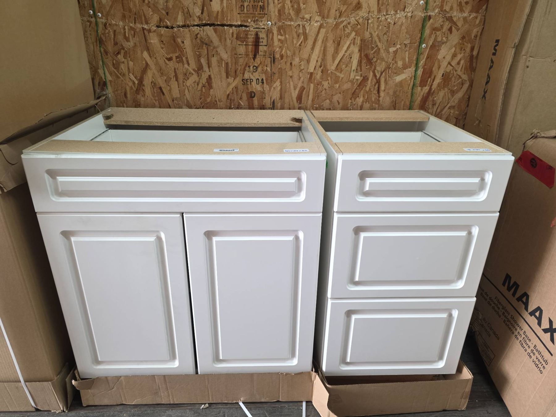 2 PC White Wooden Cabinets with Dimensions of 30x24x35 and 18x24x35