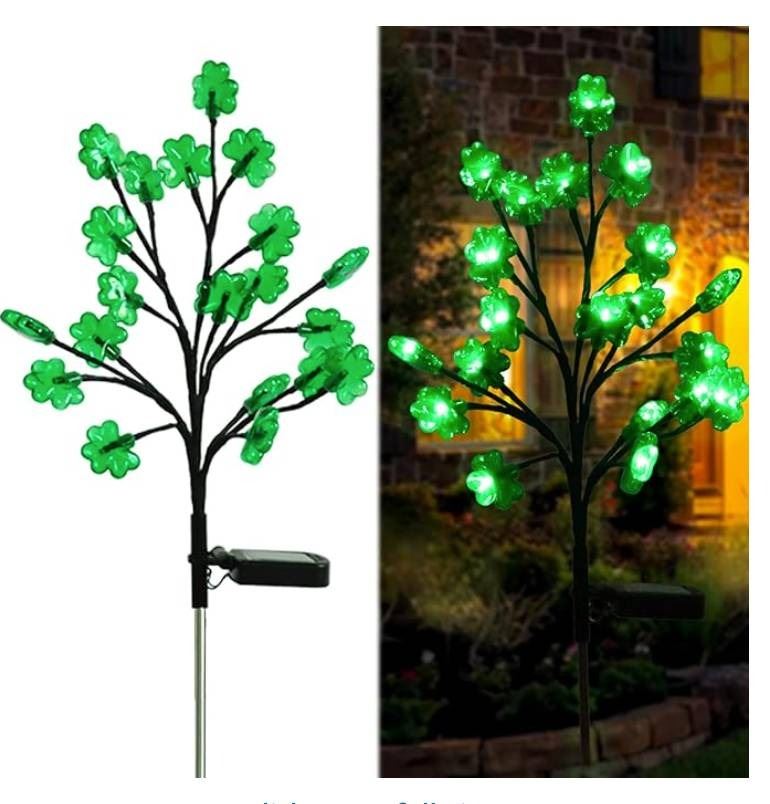 2 Packs Solar St Patricks Day Decorations Shamrock Stake Lights, Waterproof Outdoor