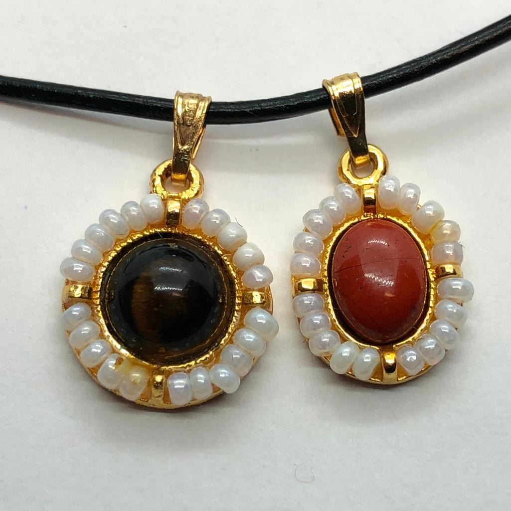 2 Silver Gold Plated Genuine Gemstone Pendants