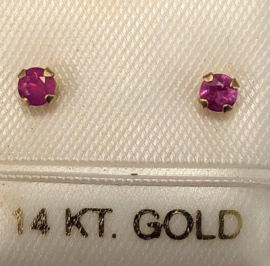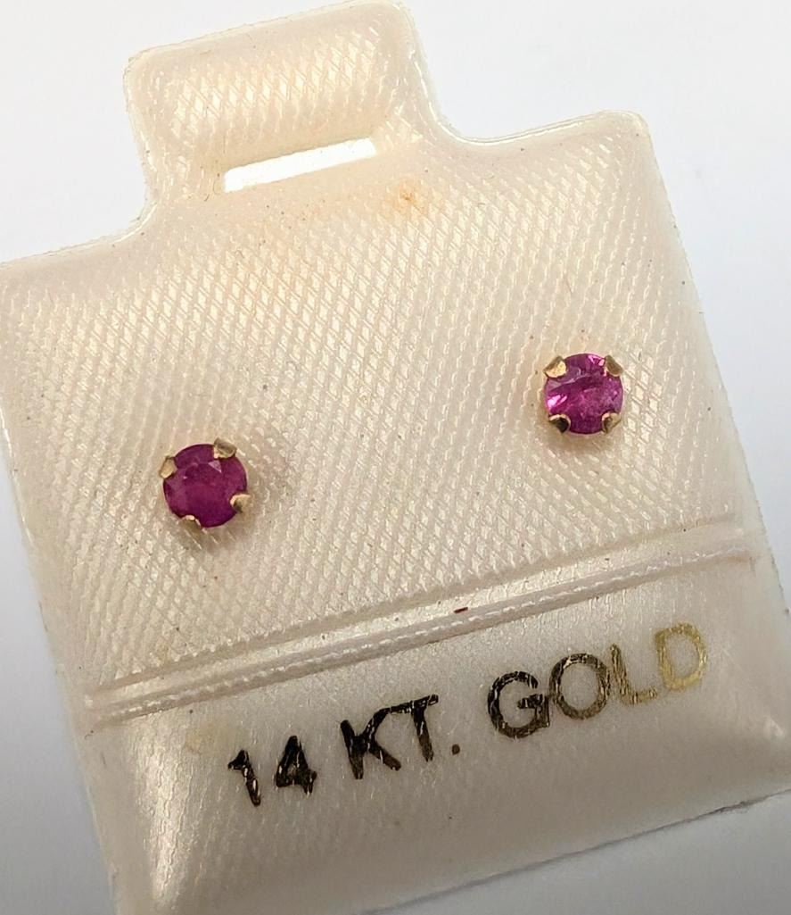 14K Yellow Gold Genuine Ruby 3Mm Earrings (~Size 0) (~length 0 inches), Made in Canada, Suggested Retail Value $200
