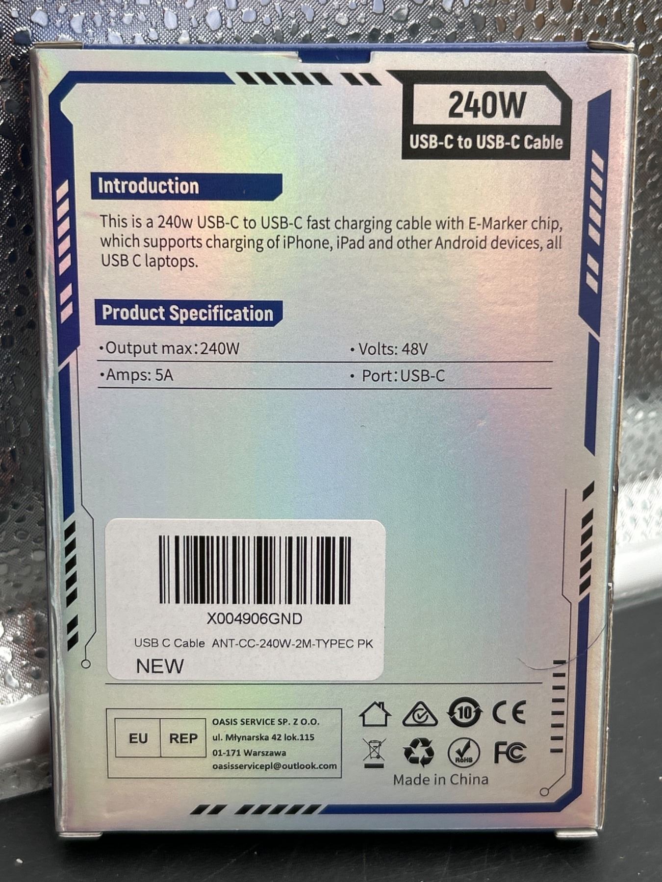 240W USB-C to USB-C Fast Charging Cable with E-Marker Chip