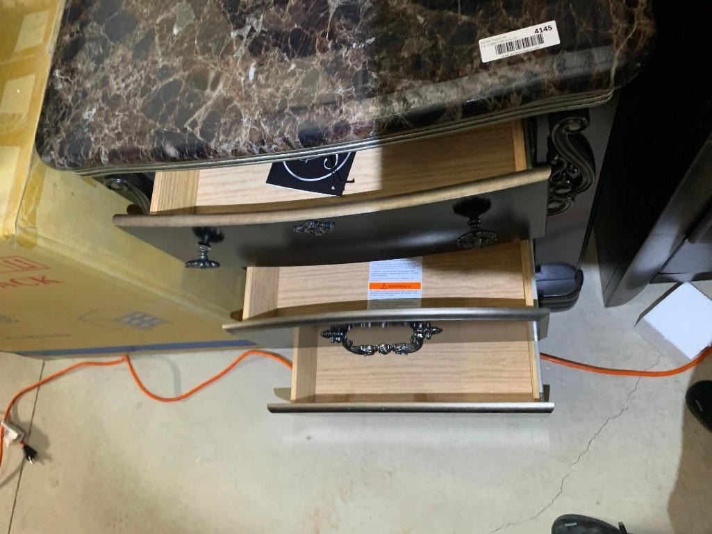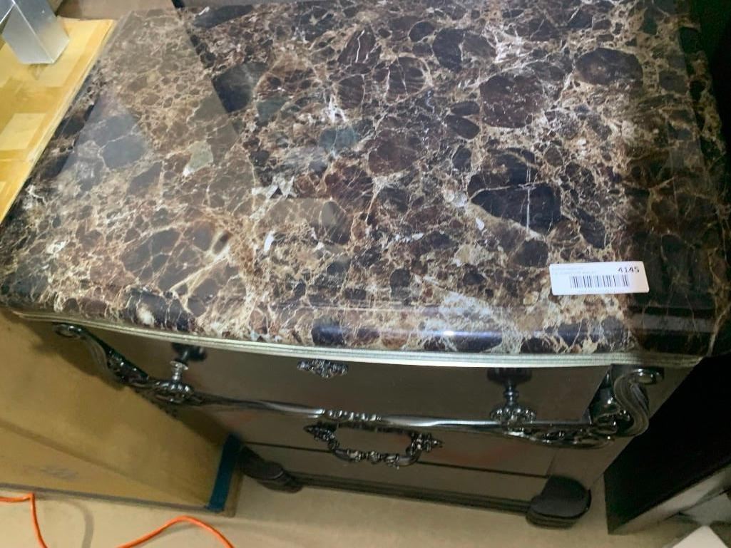 3 Drawer Night Stand With Marble Style Top
