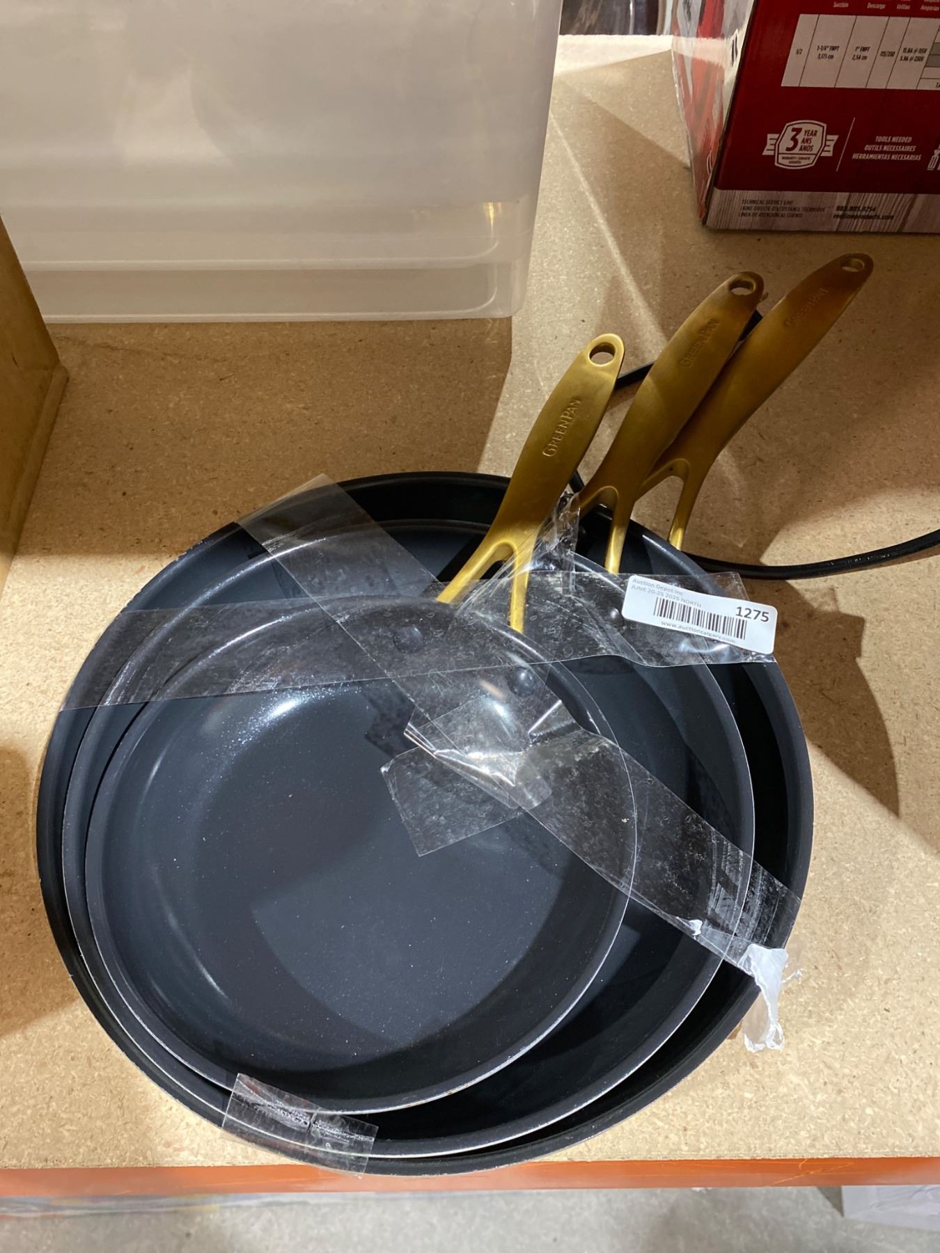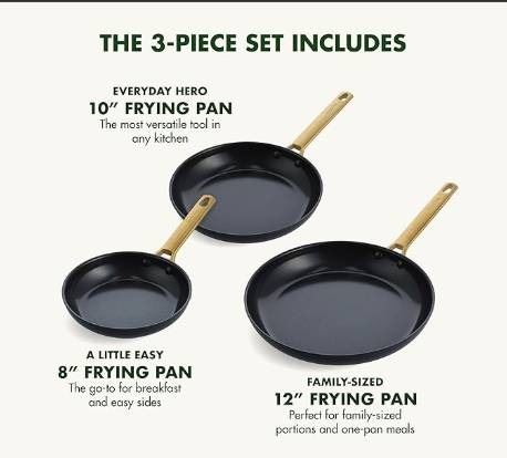 3 Greenpan Non-Stick Frying Pans With Gold-Tone Handles