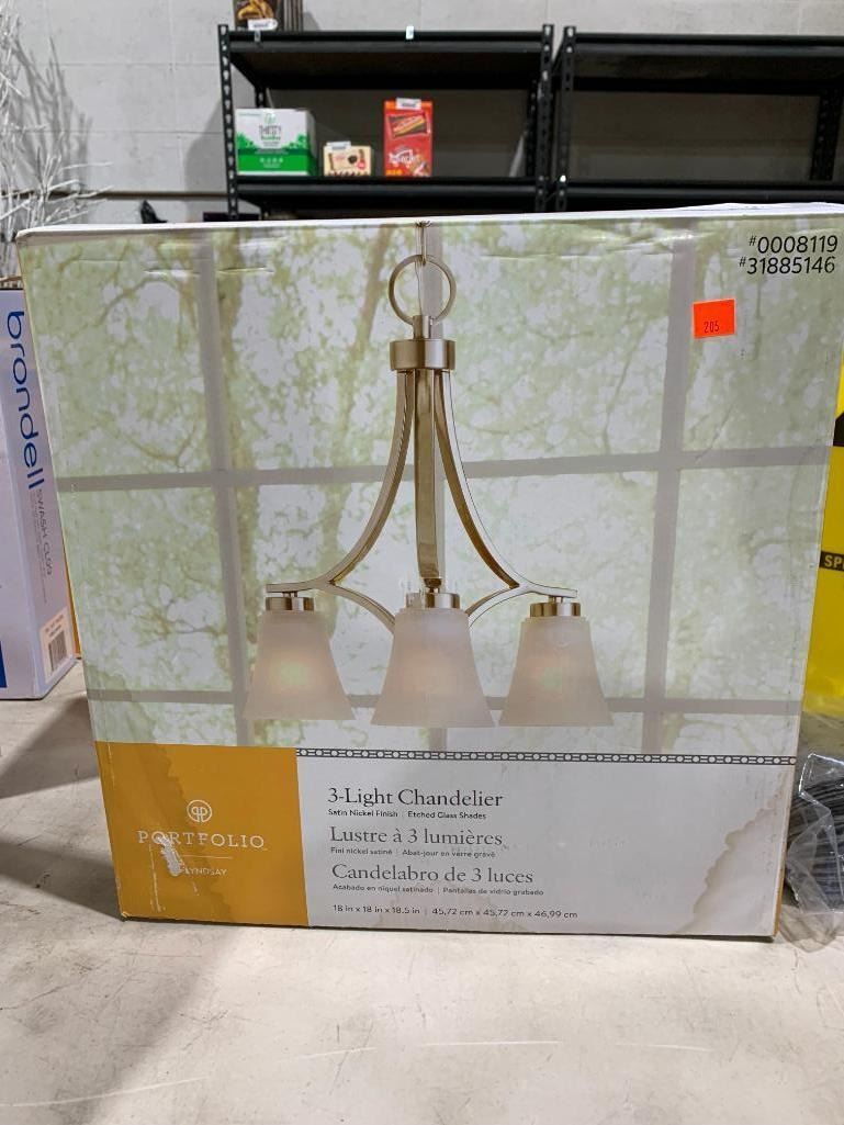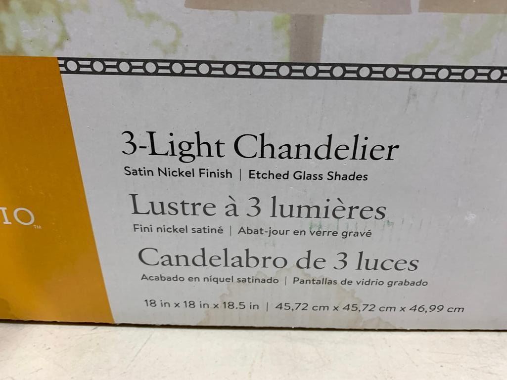 3-Light Chandelier - Satin Nickel Finish - Etched Glass Shades 18x18x18.5