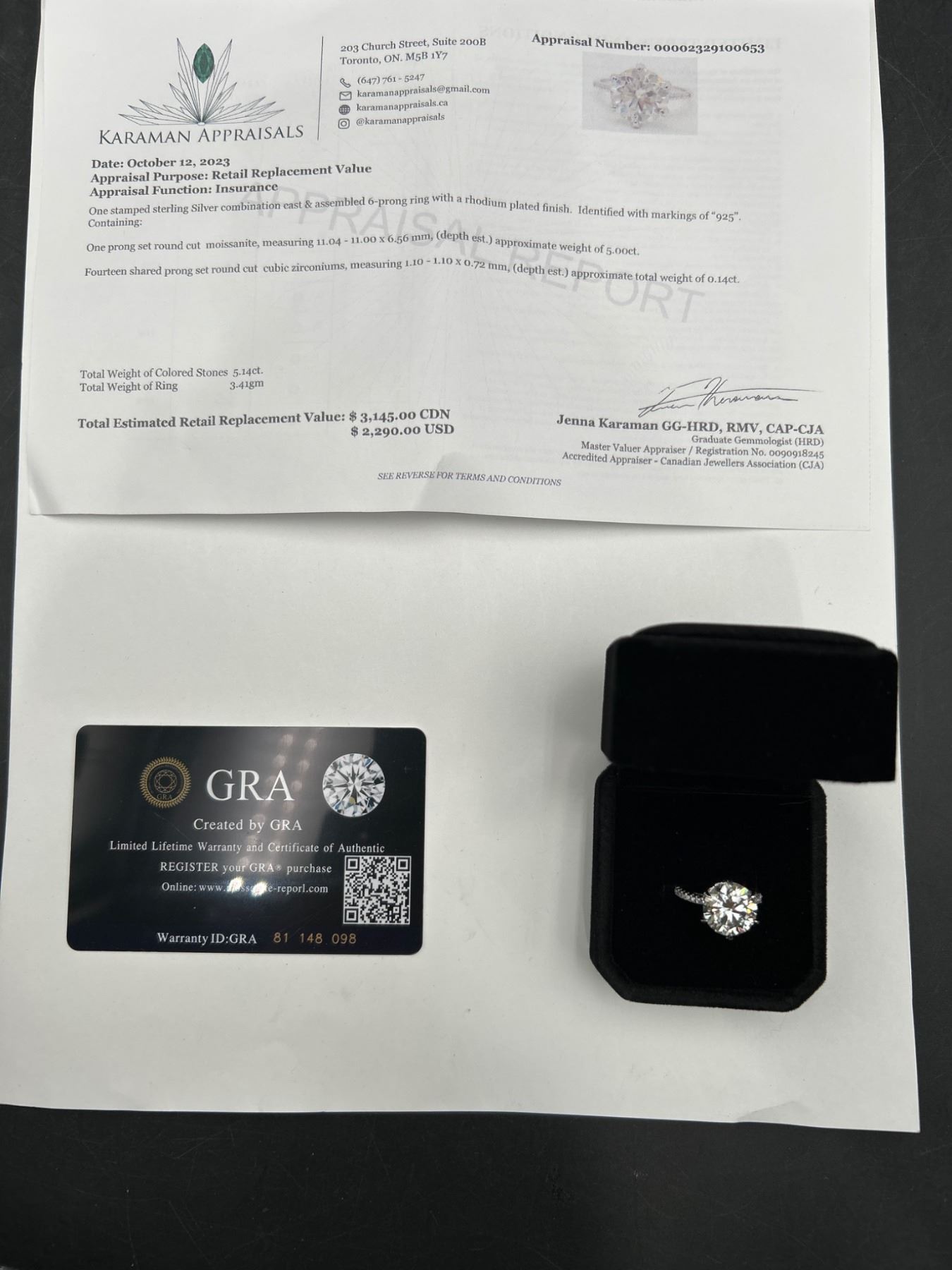 $3145 APPRAISED Silver Ring 5.00ct MOISSANITE RING