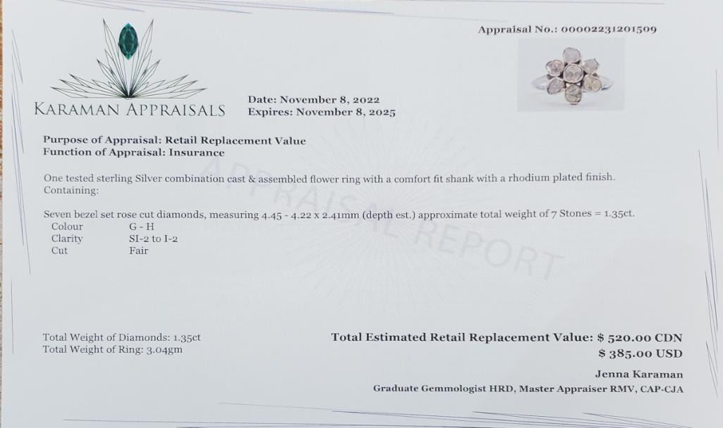 Silver Diamond (1.35ct) Rhodium Plated Ring (~weight 3.1g), Suggested Retail Value $320