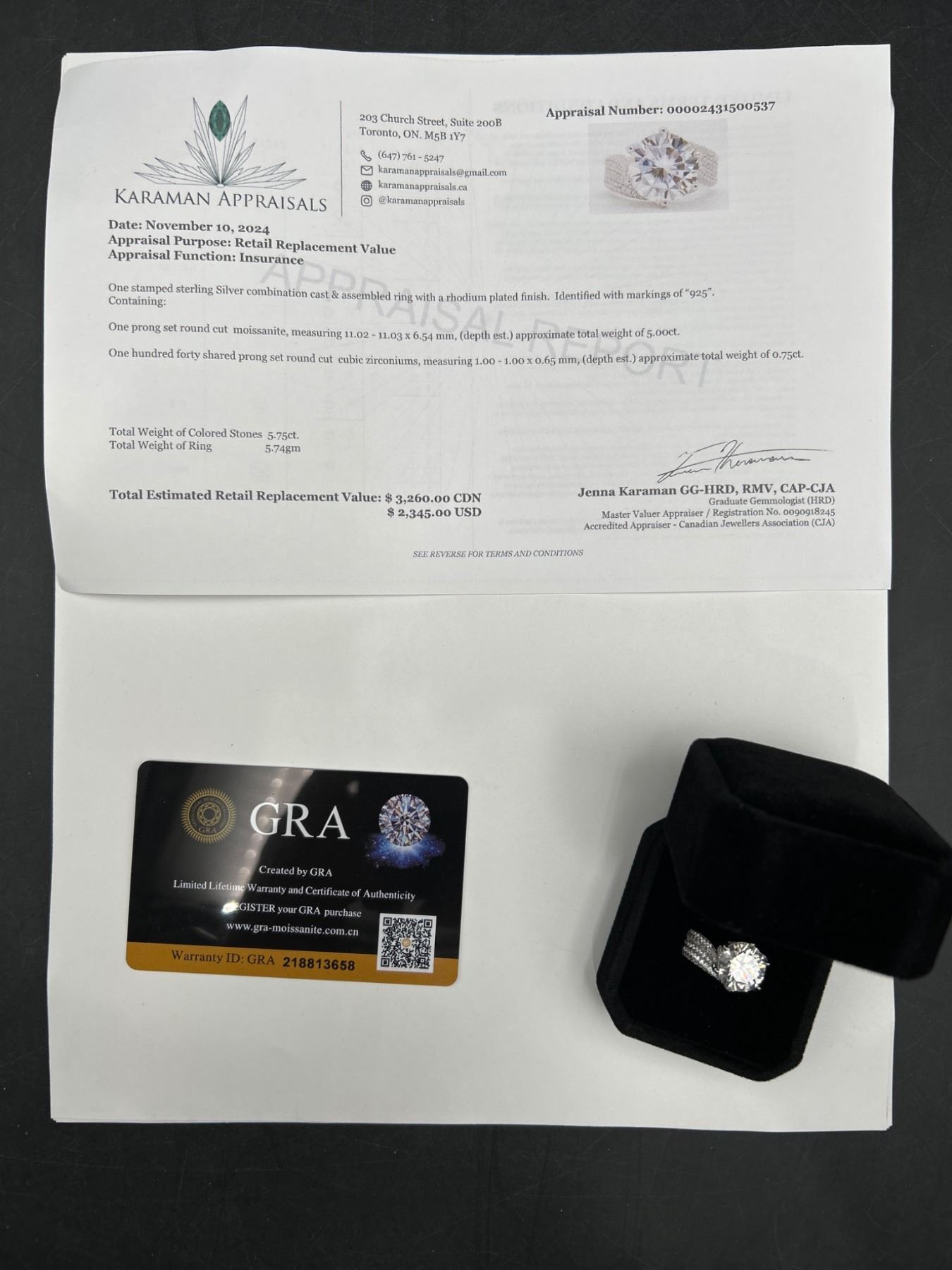 $3260 APPRAISED 5.0 CARAT MOISSANITE SOLITAIRE SHANK STYLE RING