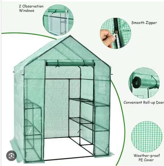 36 x 56 x 77 Inch Walk-In Greenhouse with PE Cover