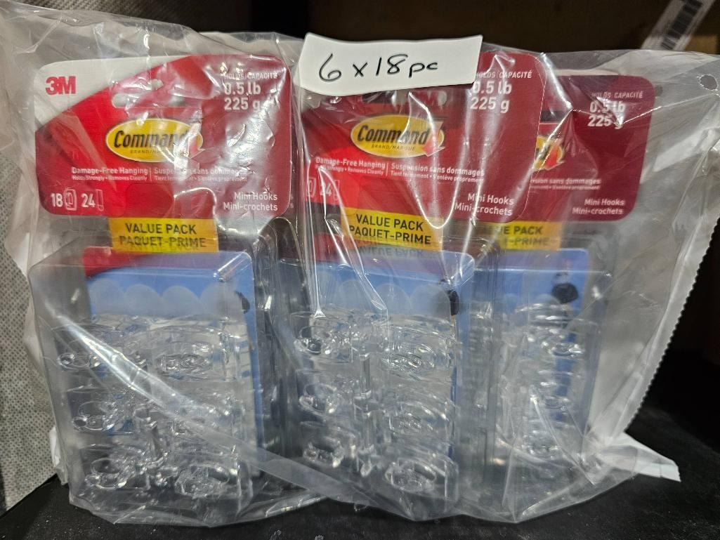 3M Command Mini Hooks 0.5 lb Capacity Value Pack Set of 6 x 18 Pieces