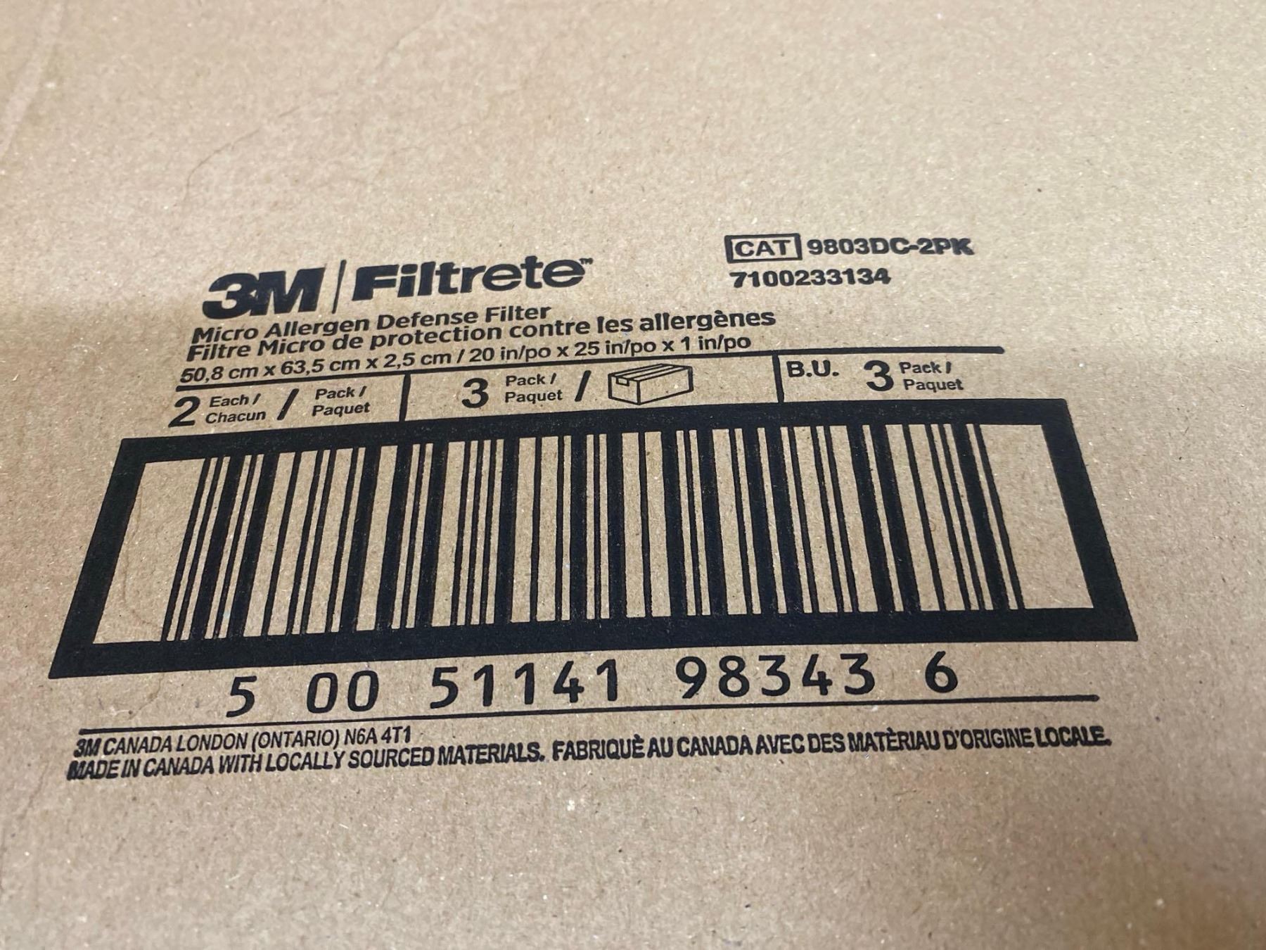 3M FiltreteMicro Allergen Defense Filter 2each per pack x's 3 20 x 25 x 1