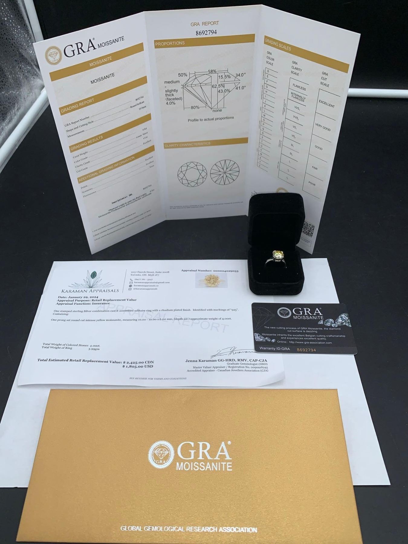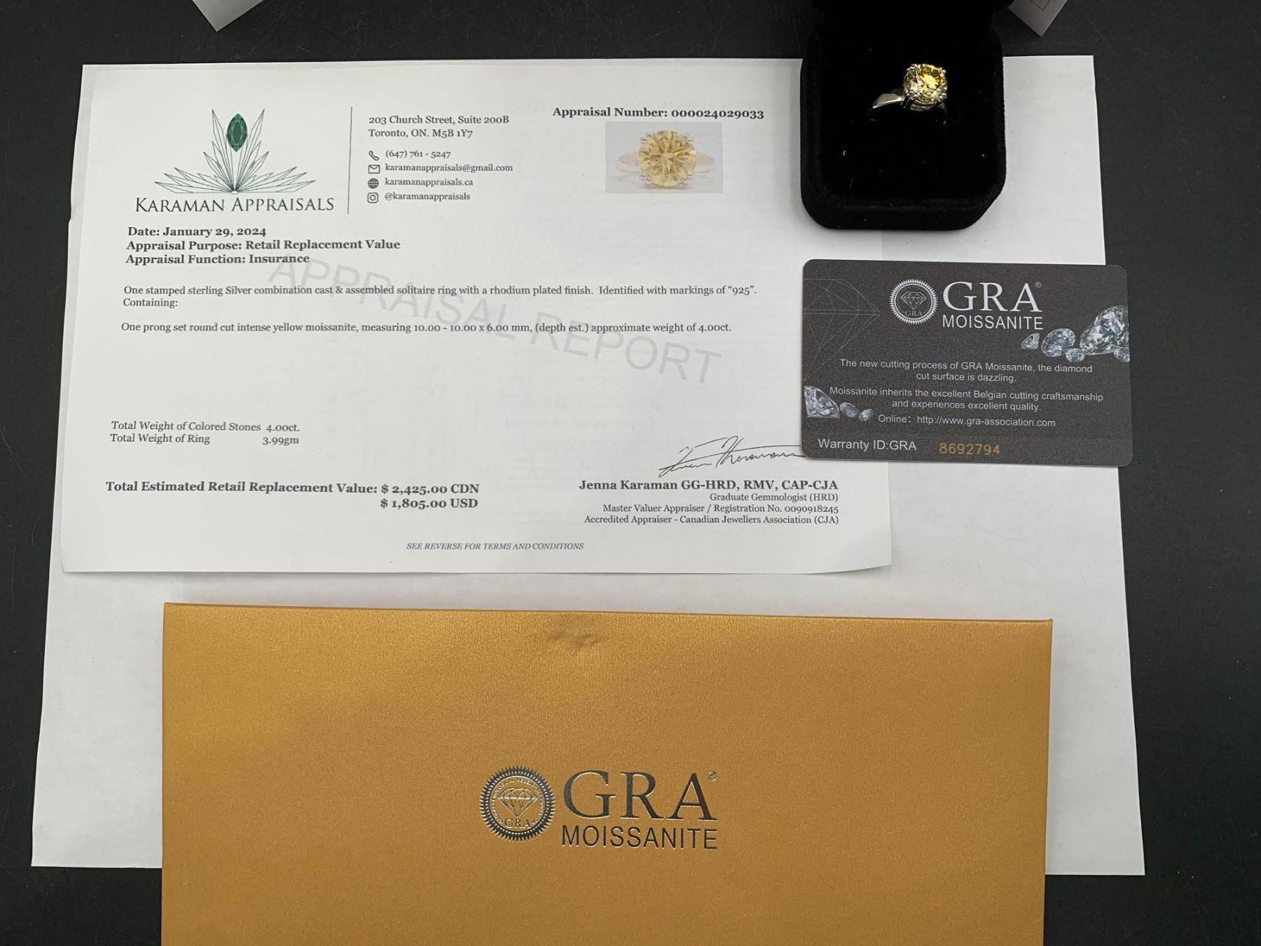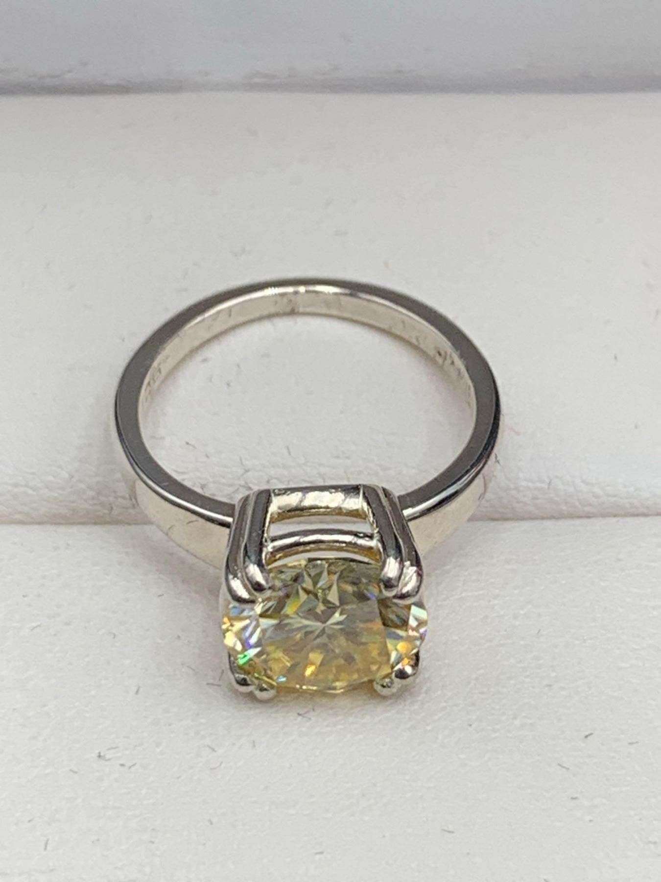 4.00 CT GRA CERTIFIED MOISSANITE VVS LEMON YELLOW SET IN A STERLING SILVER IN A 8 CLAW HEAD RETAIL VALUE $2,425.00