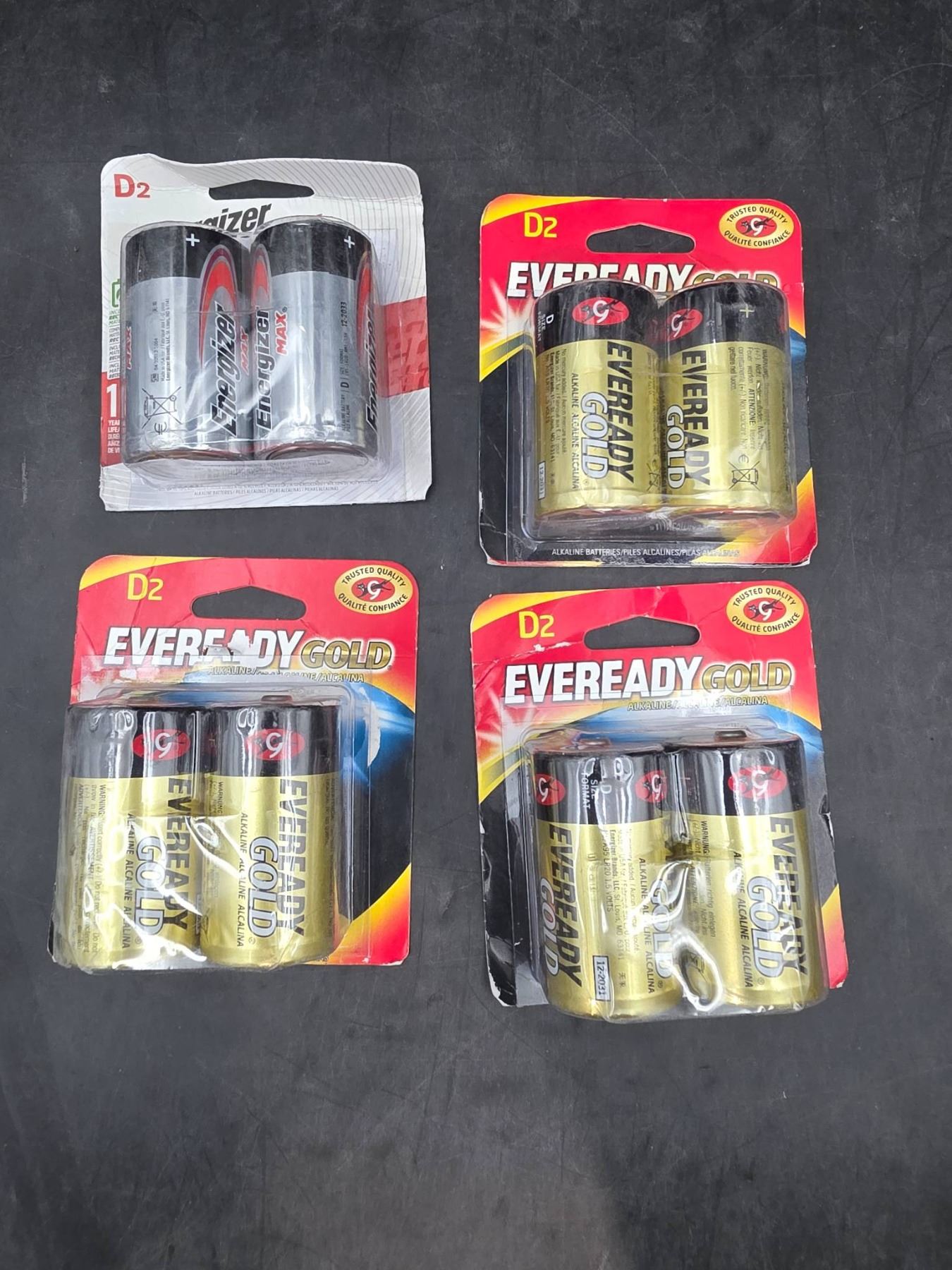 4 Packs of D2 Size Eveready Gold and Energizer Batteries