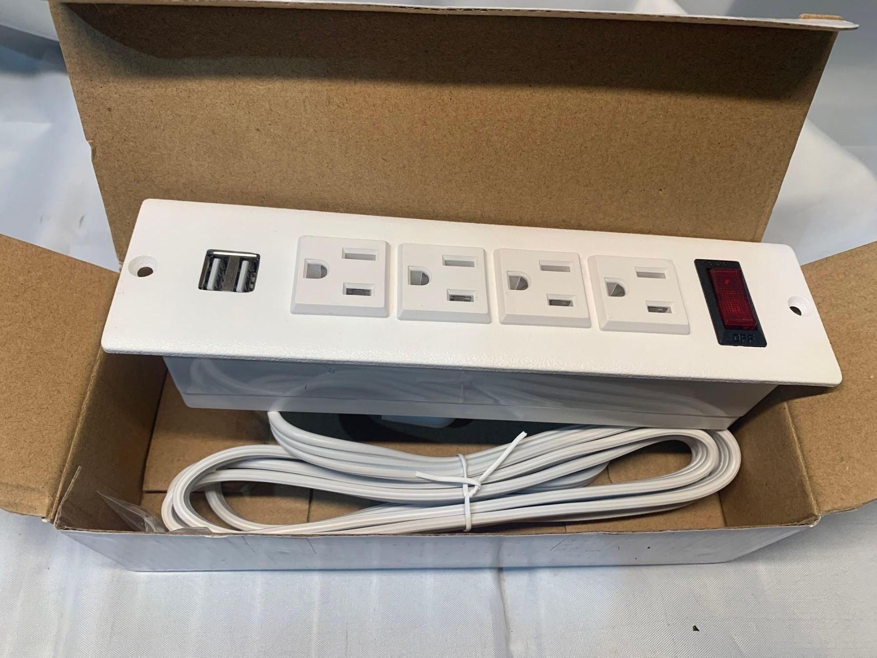 4 outlet power bar with 2 USB ports- White