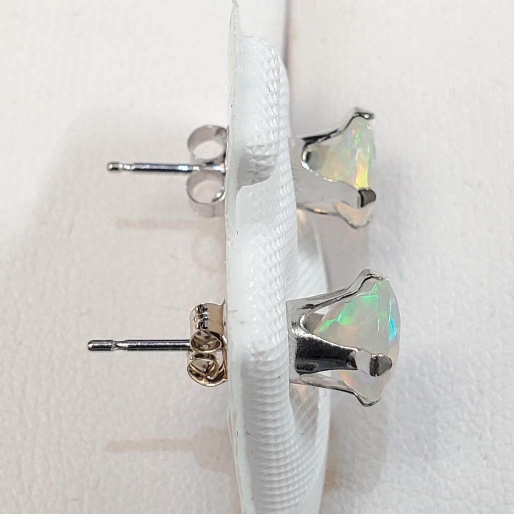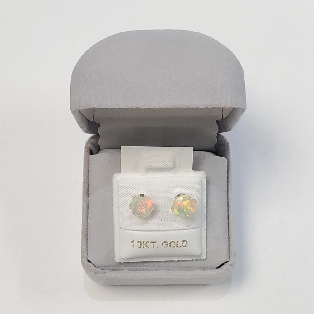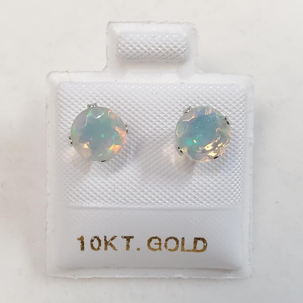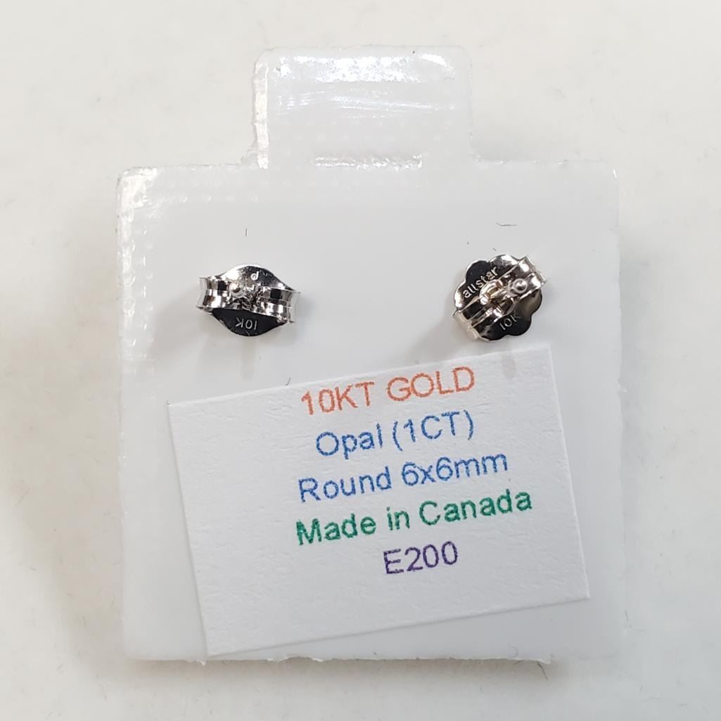 10K White Gold Opal (Round 6X6Mm)(1ct) Earrings, Made in Canada, Suggested Retail Value $400
