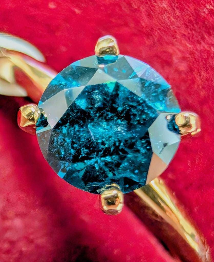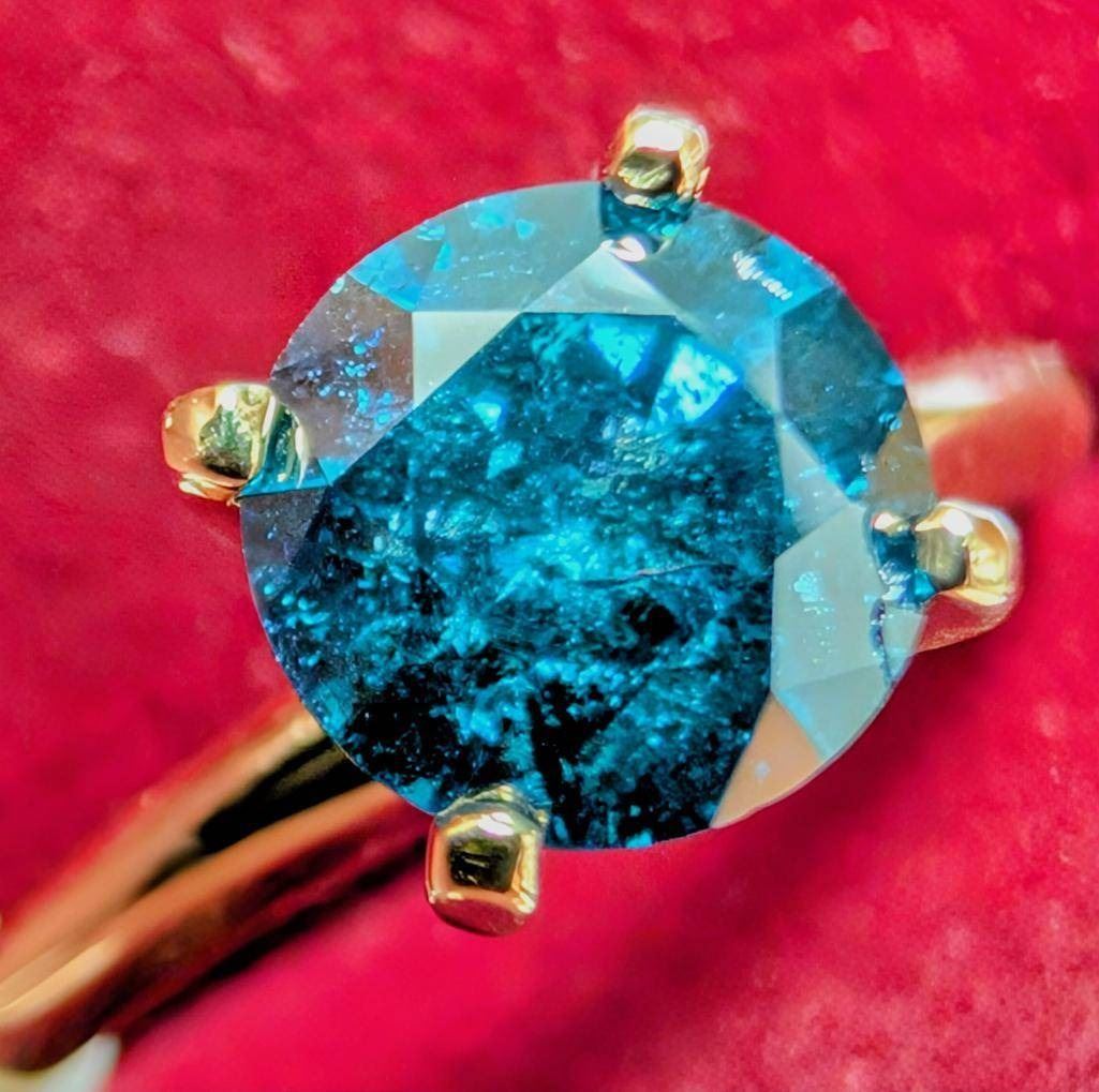 $4445, 10K(2.36g), NATURAL ENHANCE BLUE DIAMOND (1.05ct)RING, size 6.5, appraised value $4445, ring resizeable for $50