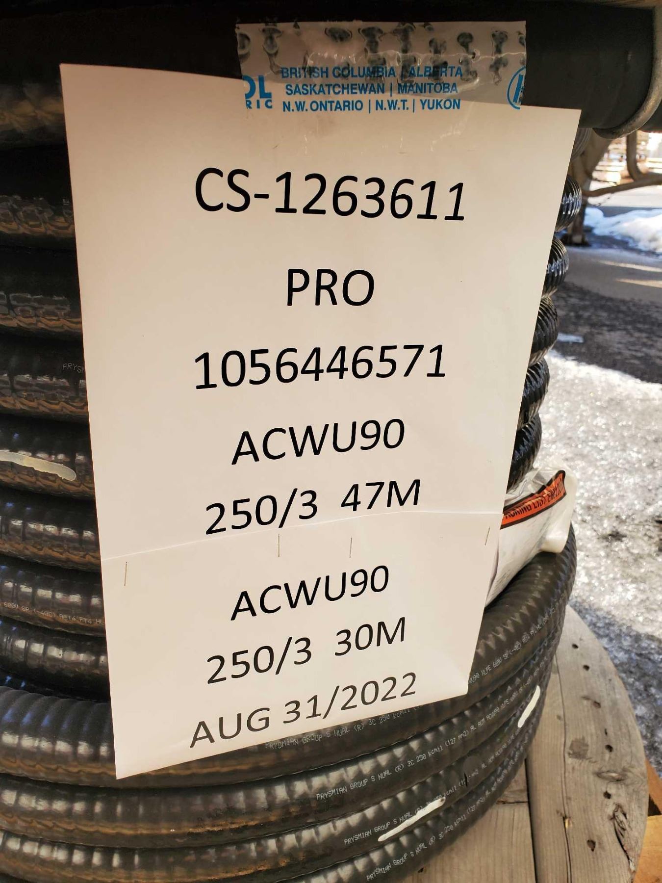 47 meters of 3 conductor 250 ACWU90 aluminum tech cable