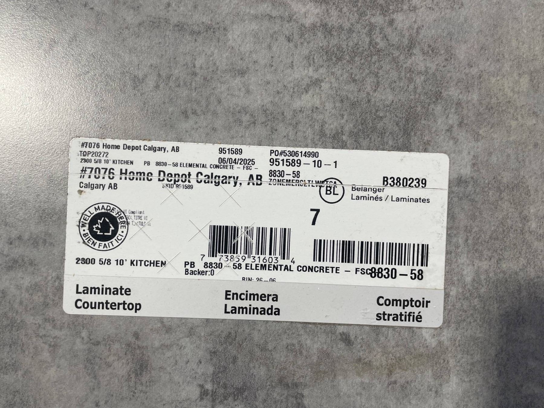 5/8 in. Laminate Countertop Slab, 2500 s/ft, Elemental Concrete 10’x21.5″