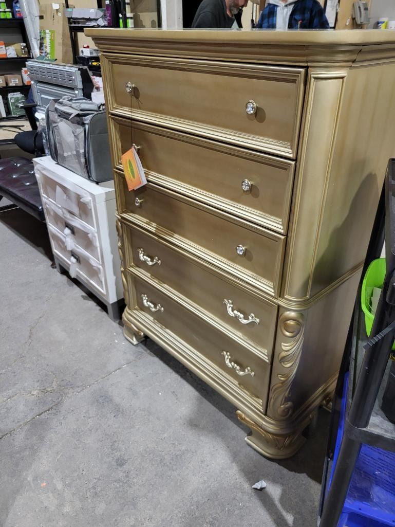 5 Drawer Tall Chest Dresser with Gemstone Handles 42Wx19Dx54"T