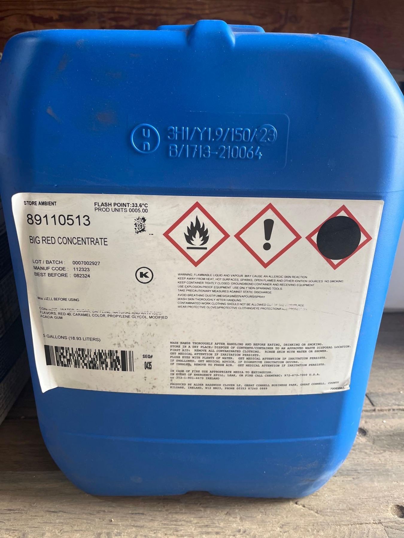 5 Gallons/ 18.93 L of Big Red Drink Concentrate