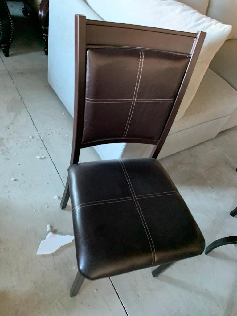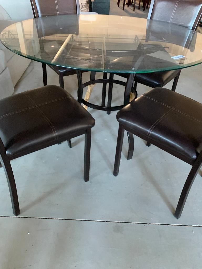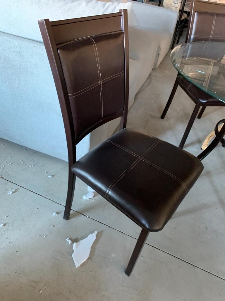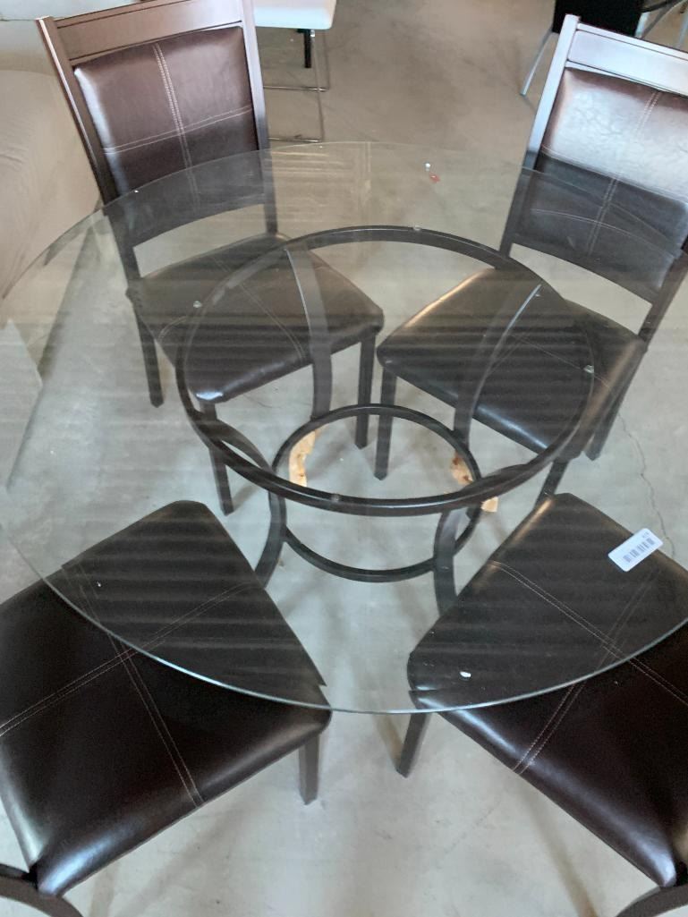 5 Piece Modern Dinette Suite with beveled round glass top table and 4 leather chairs