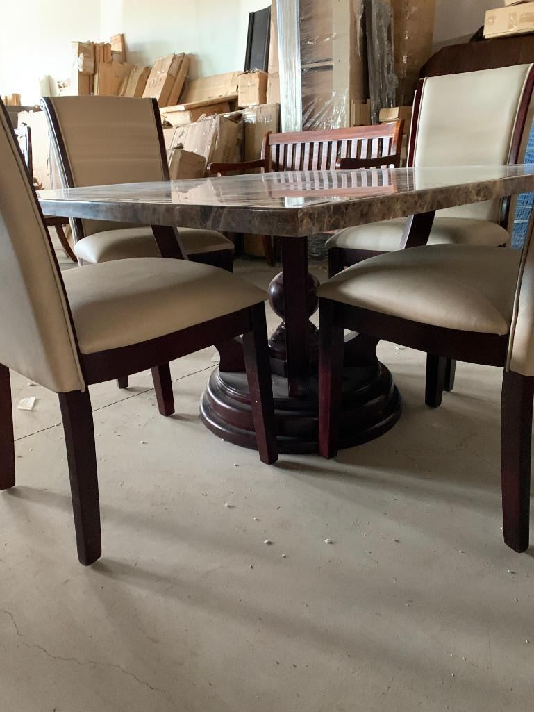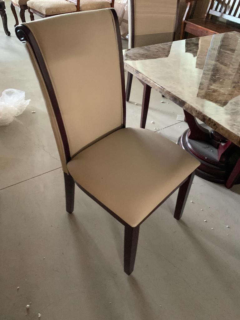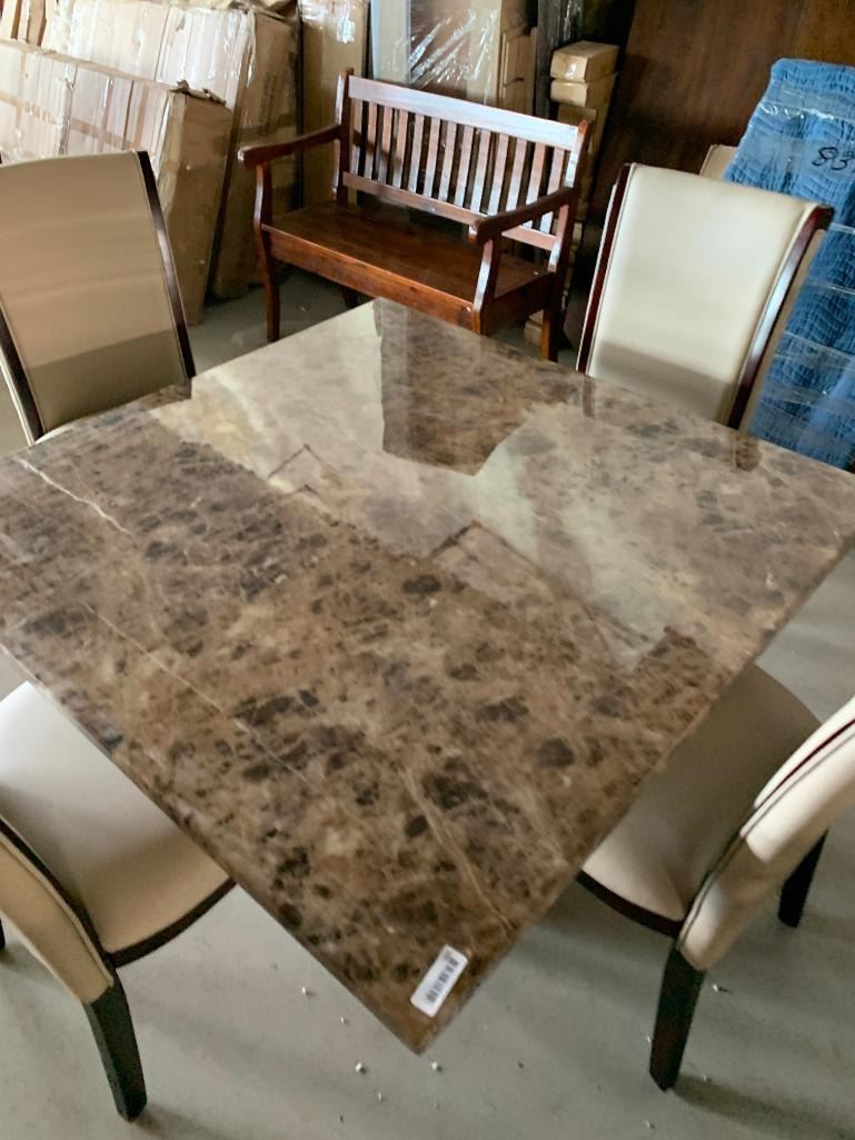 5 Piece dinning Room suite includes rectagular Faux Marble Table with 4 Cream Leather chairs