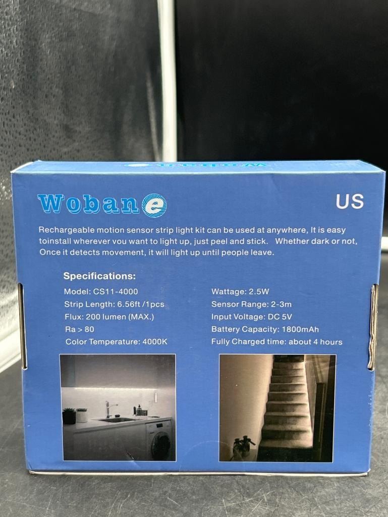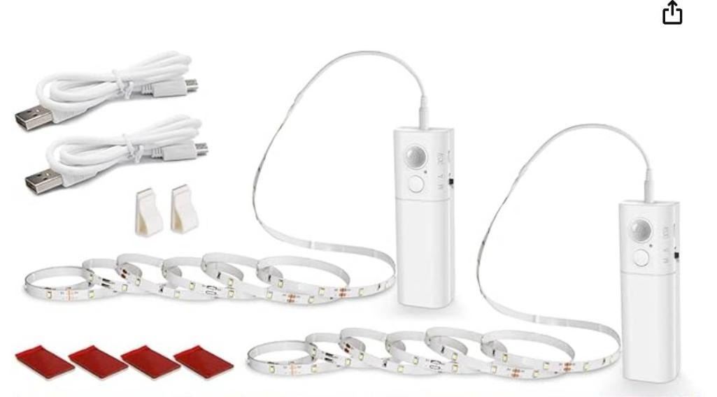 6.56ft Motion Sensor Strip Light, WOBANE Rechargeable Magnetic Battery Box with LED Strip,LED Closet