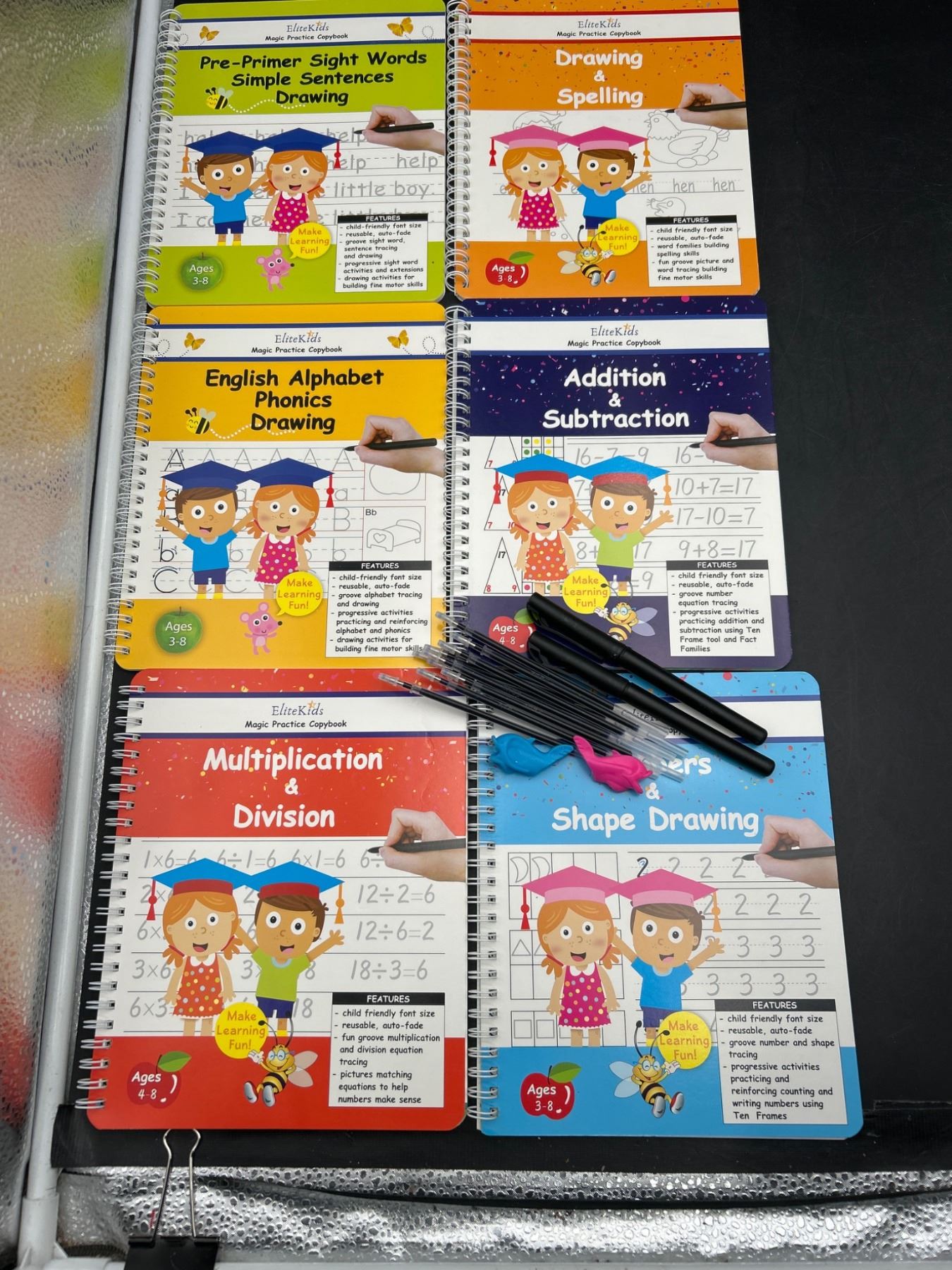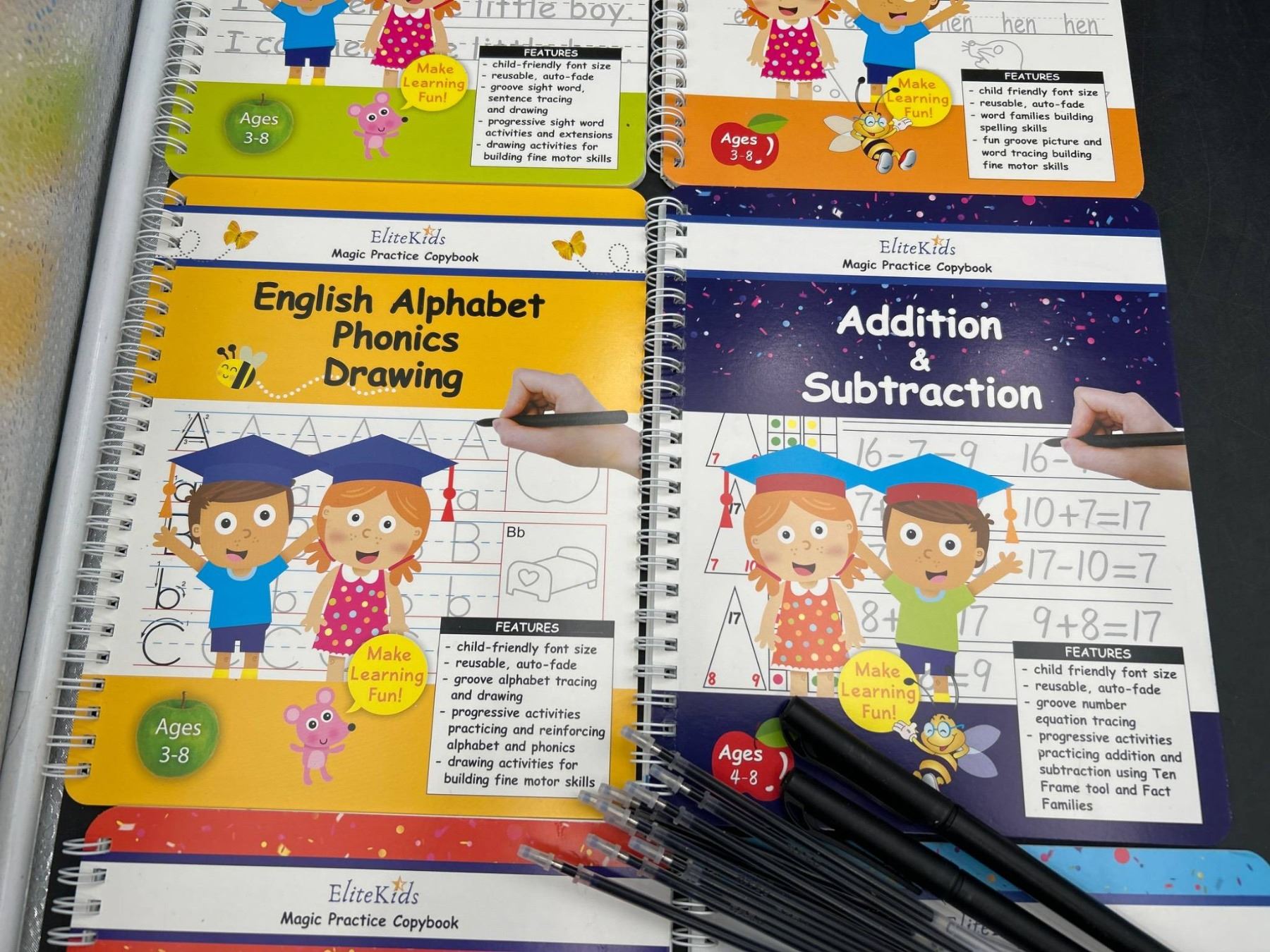 6-Book Set Handwriting Practice Books for Kids, Reusable Groove Writing Practice Copybook with Magic Calligraphy Pens, Number and Letter Tracing Books