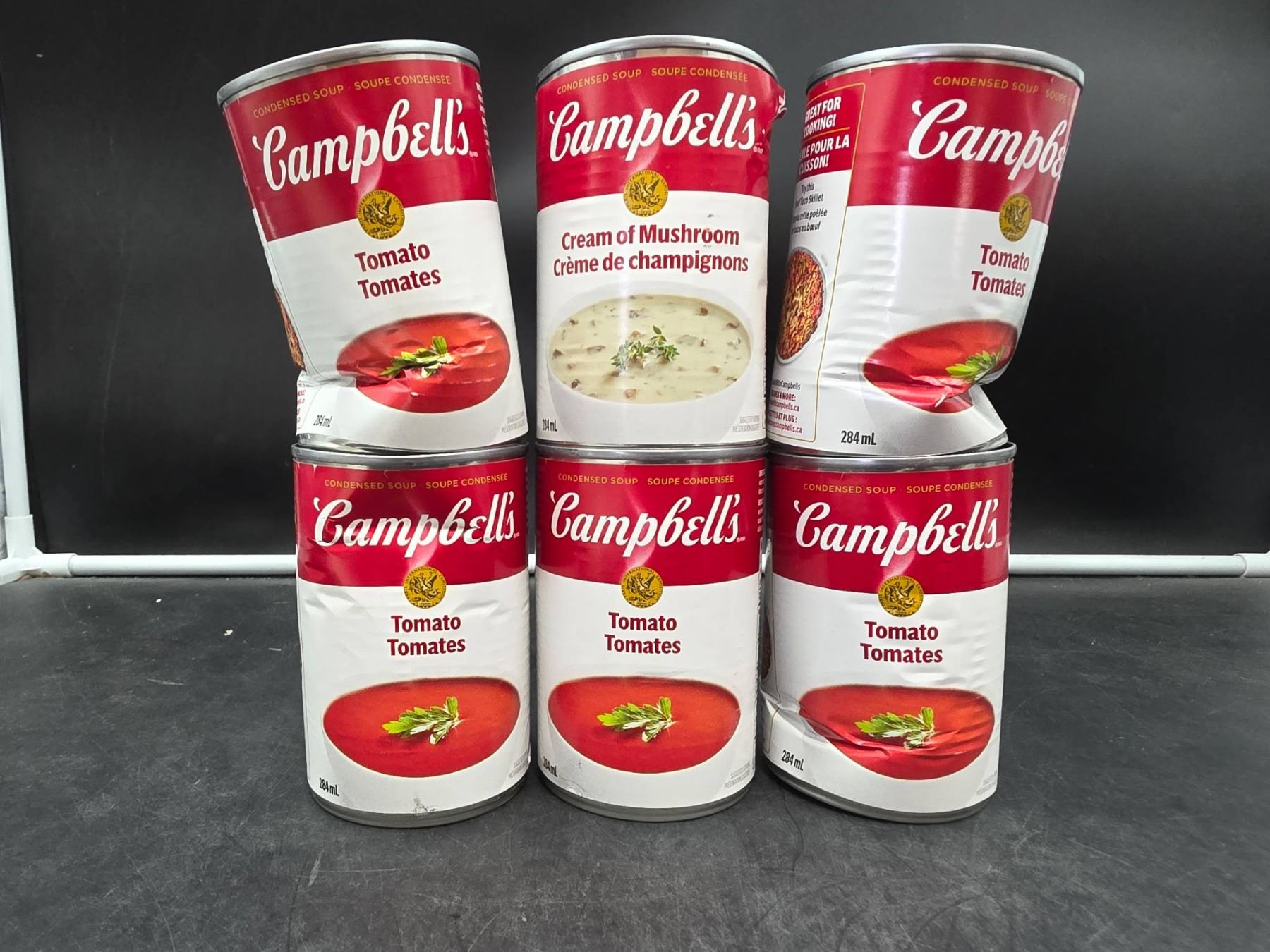 6 Cans of Campbell’s Soup Cans Including Tomato and Cream of Mushroom