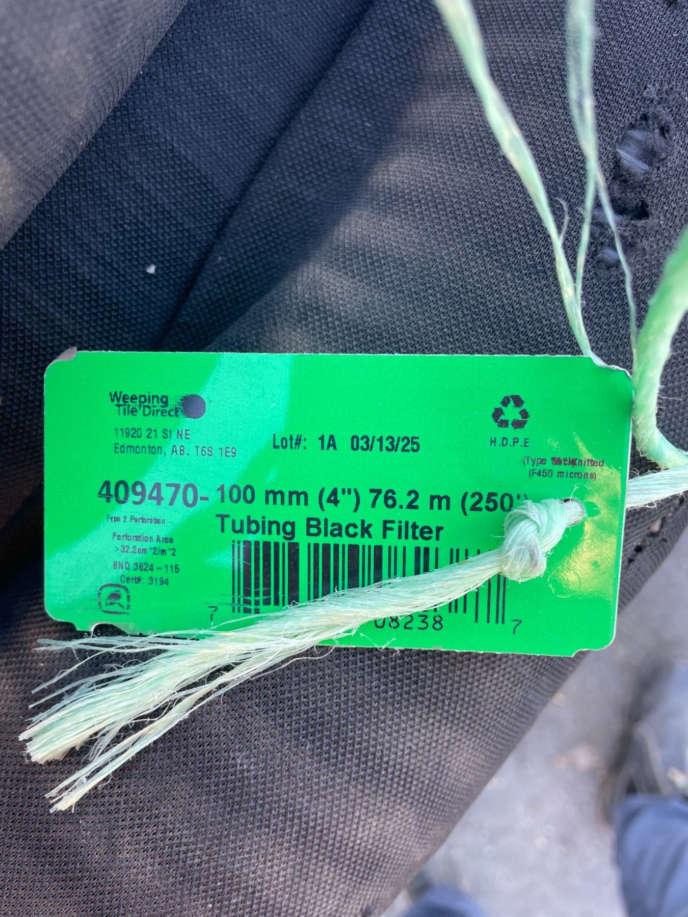 76.2 Meter Weeping Tile Drain Tubing, 100 mm (4 In) Black Filter