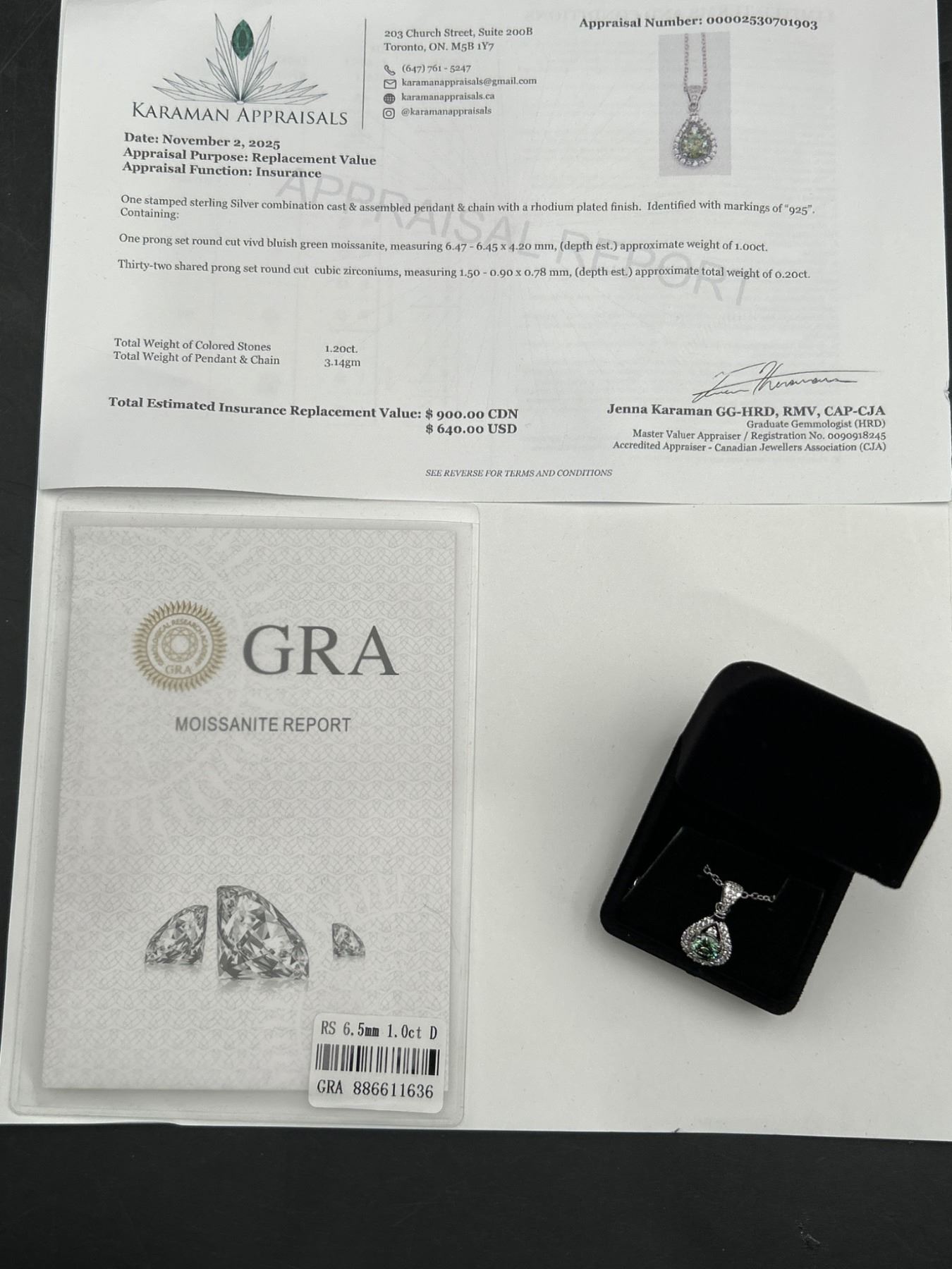 $900 APPRAISED 1.0 CARAT SOLITAIRE MOISSANITE PENDANT