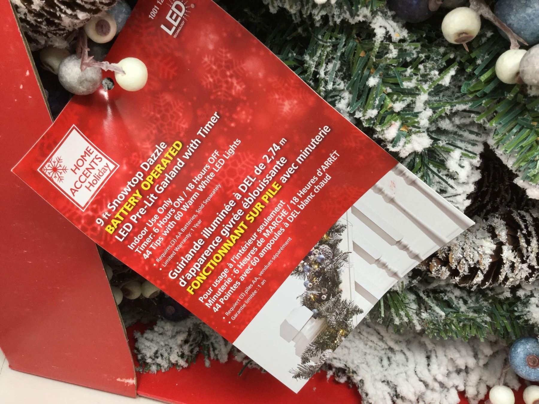 9ft Snowtop Dazzle Battery Operated LED Pre-Lit Garland and Timer