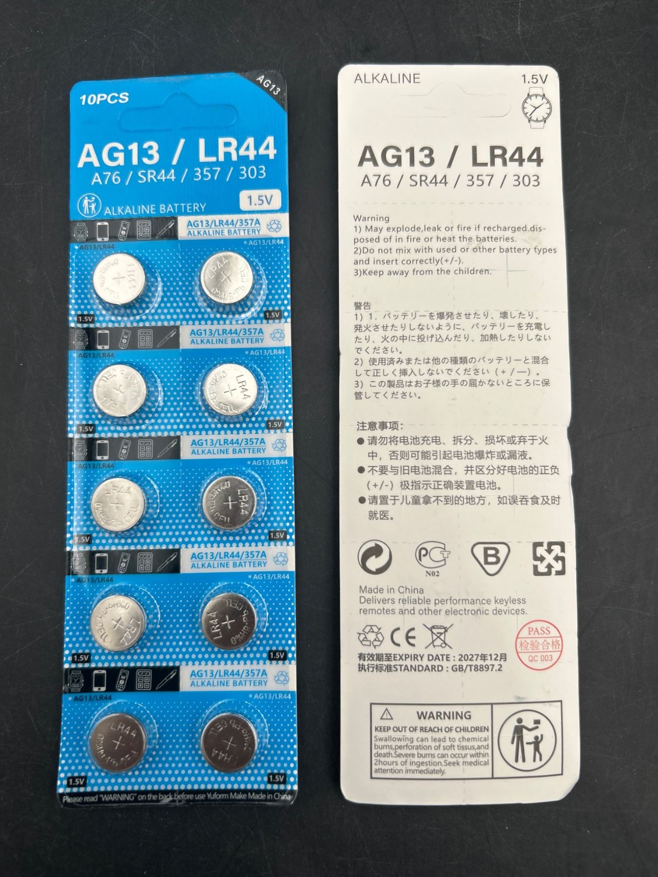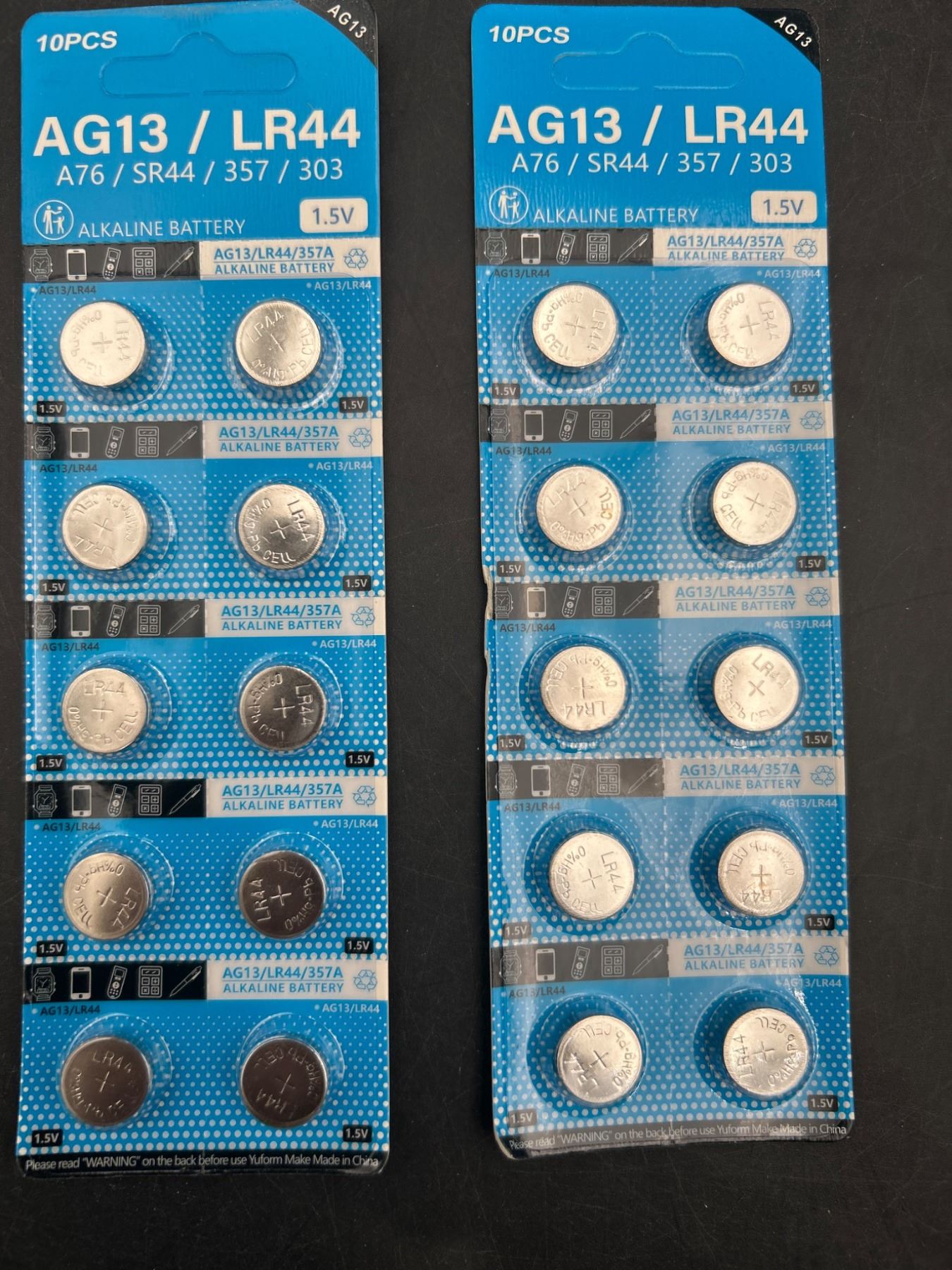 AG13/LR44 A76 SR44 357 303 Alkaline Button Cell Batteries – 20 Pieces